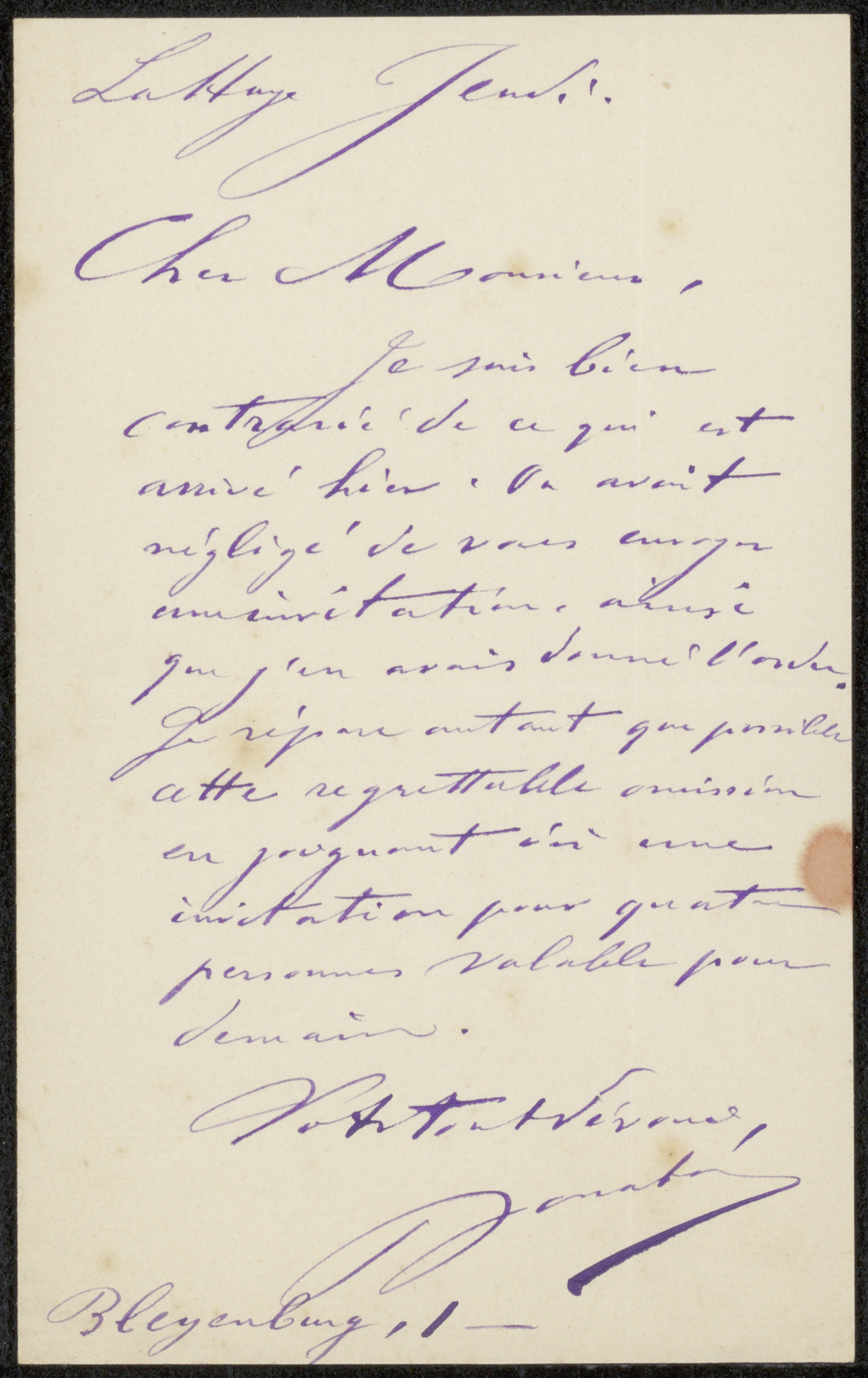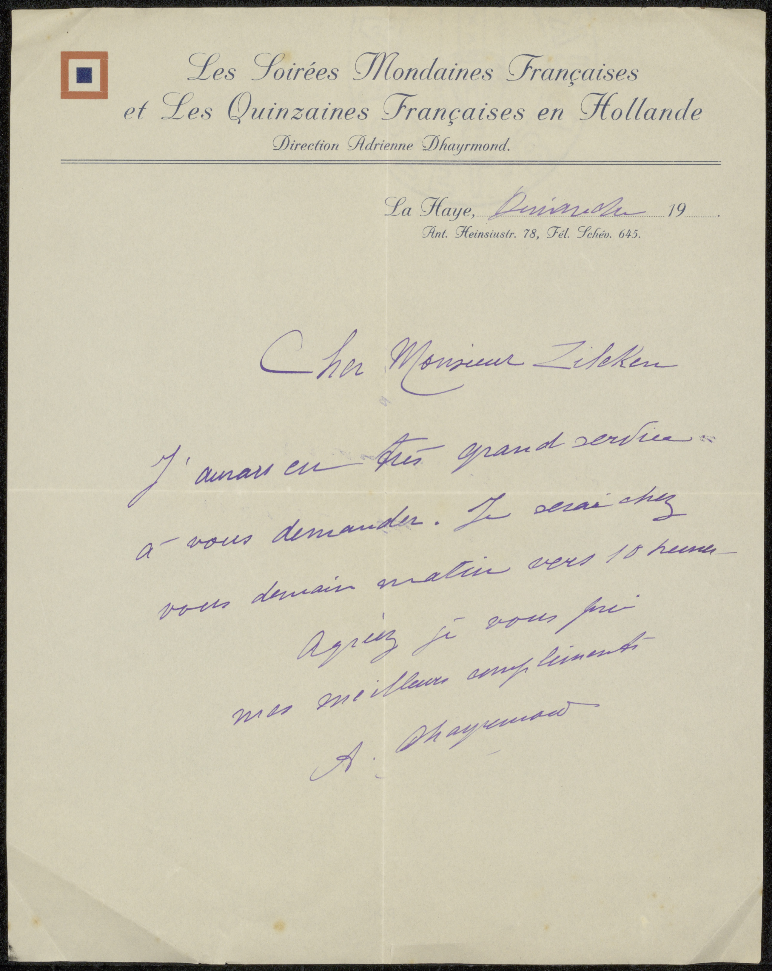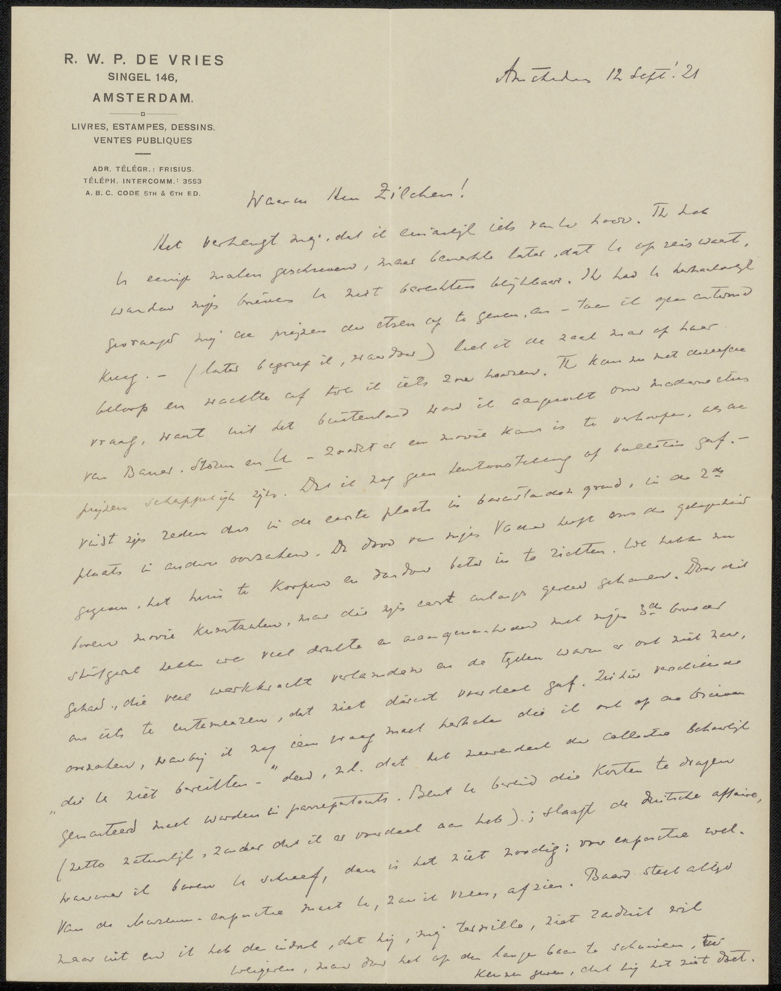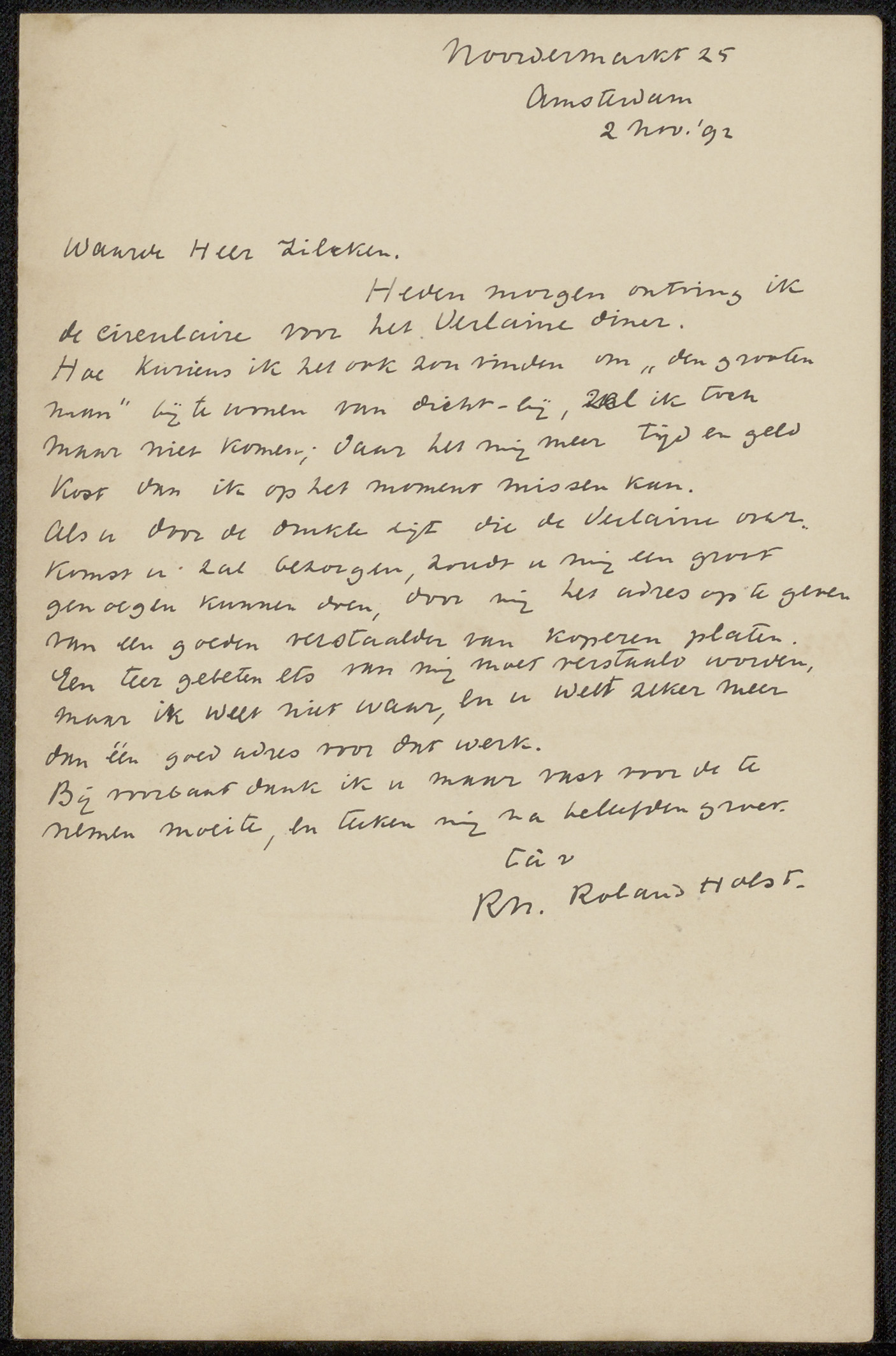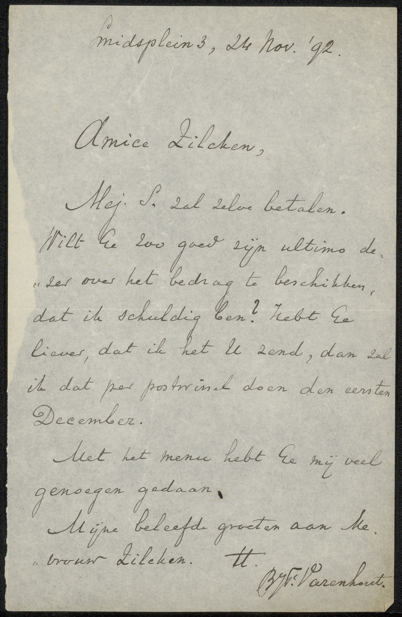 Brief aan Philip Zilcken en Henriette Wilhelmina van...