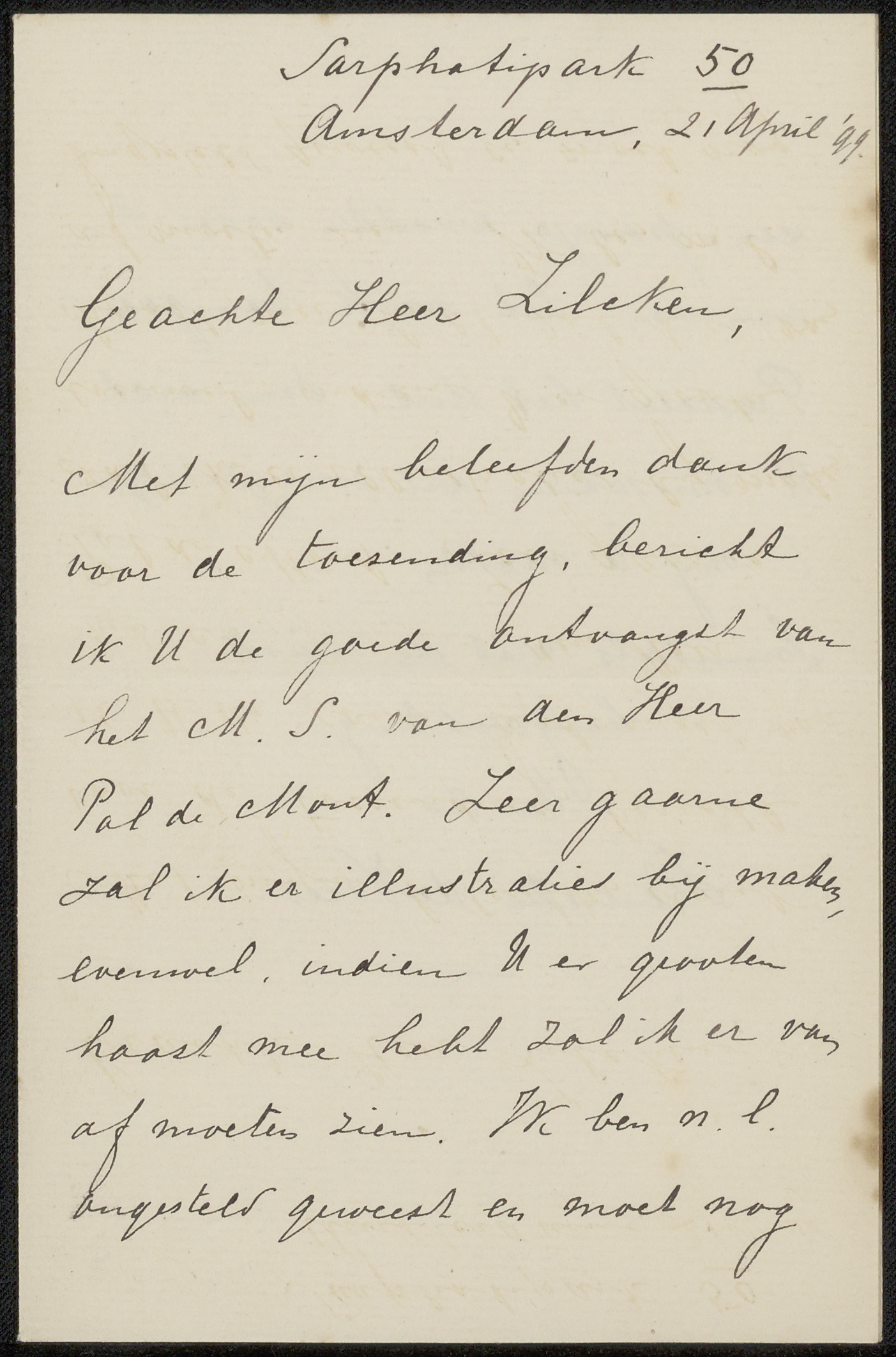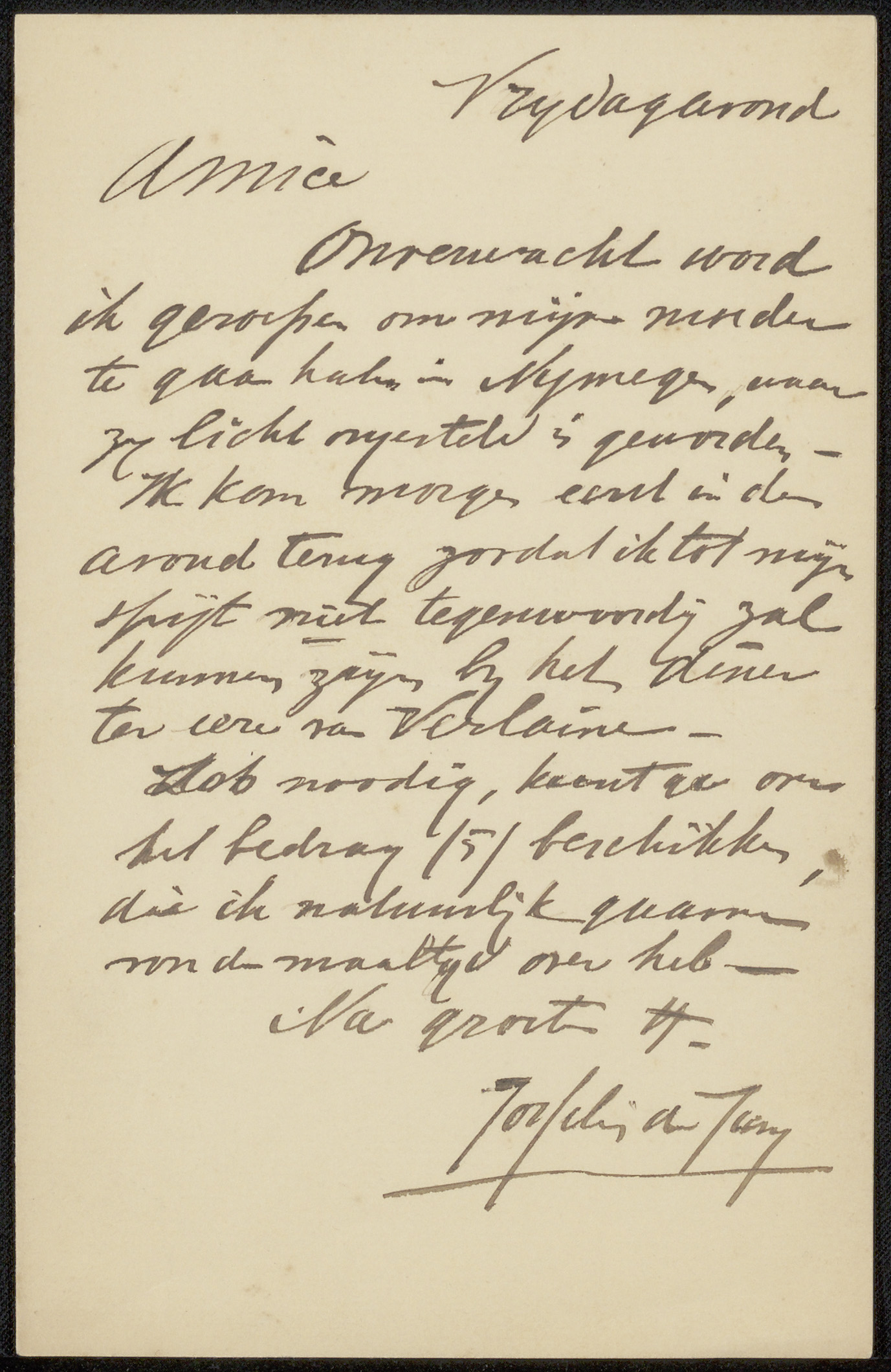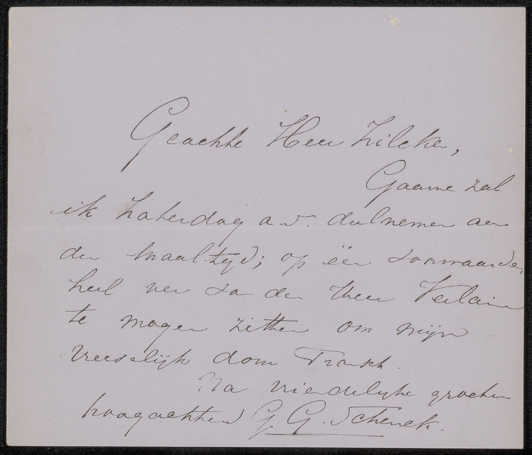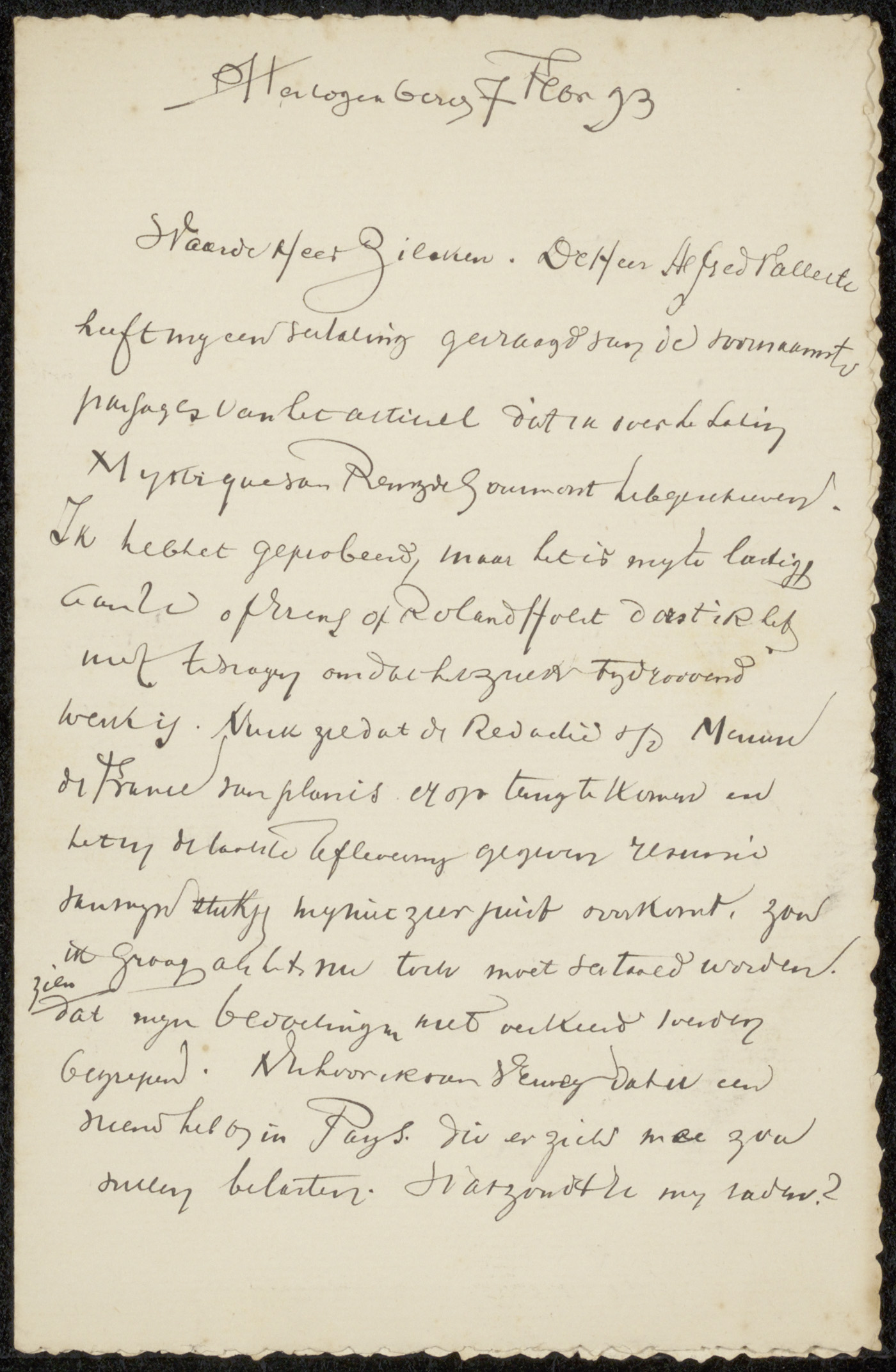Brief aan Philip Zilcken en Henriette Wilhelmina van...