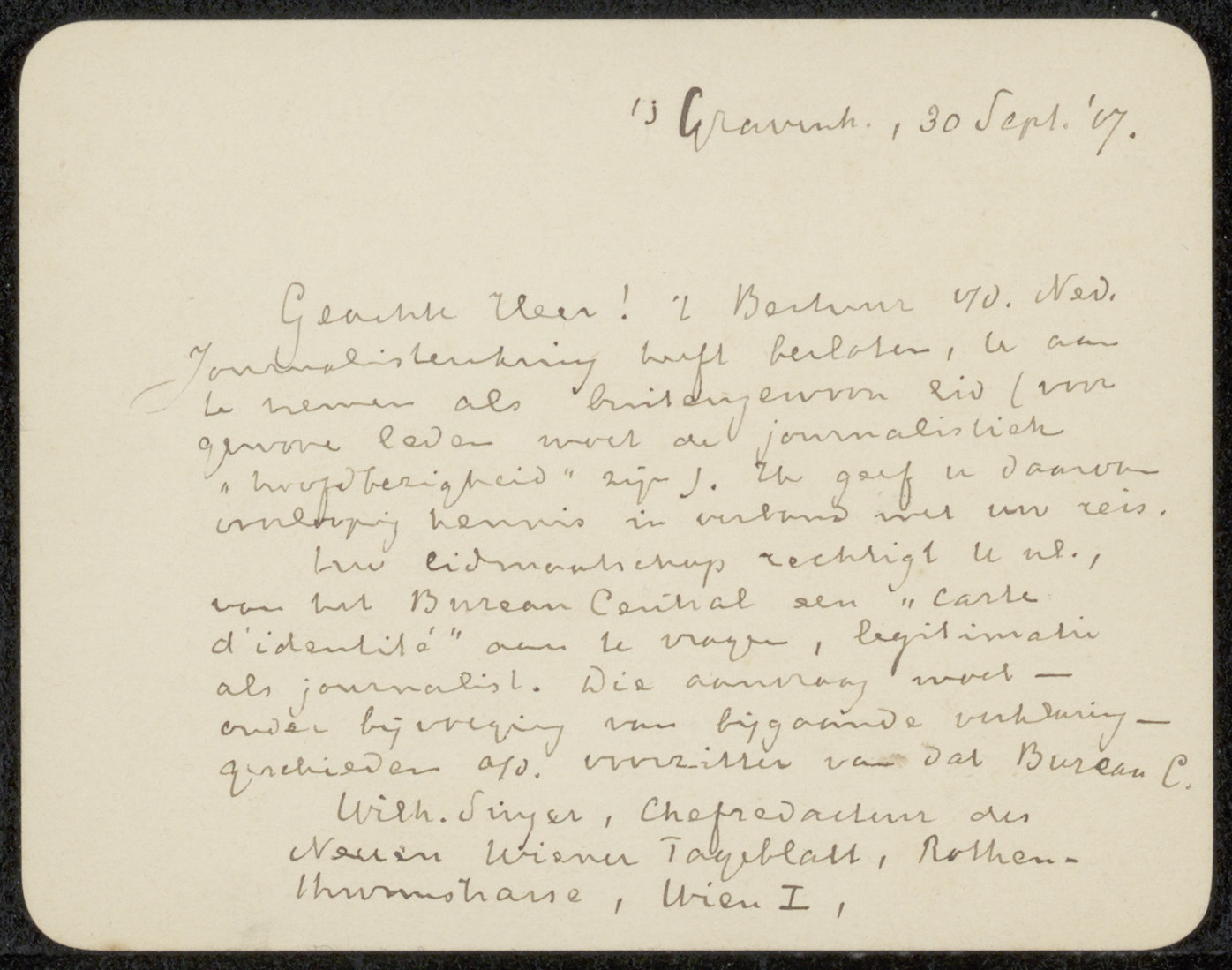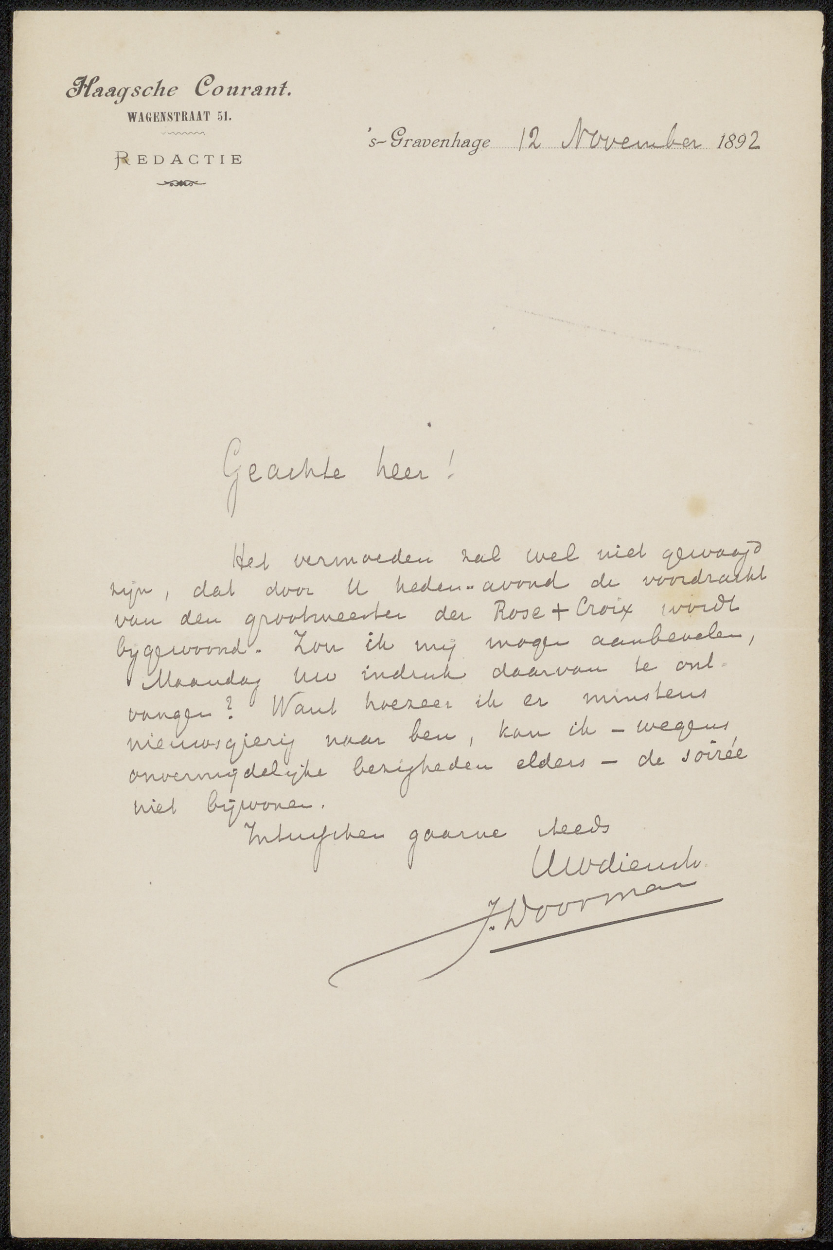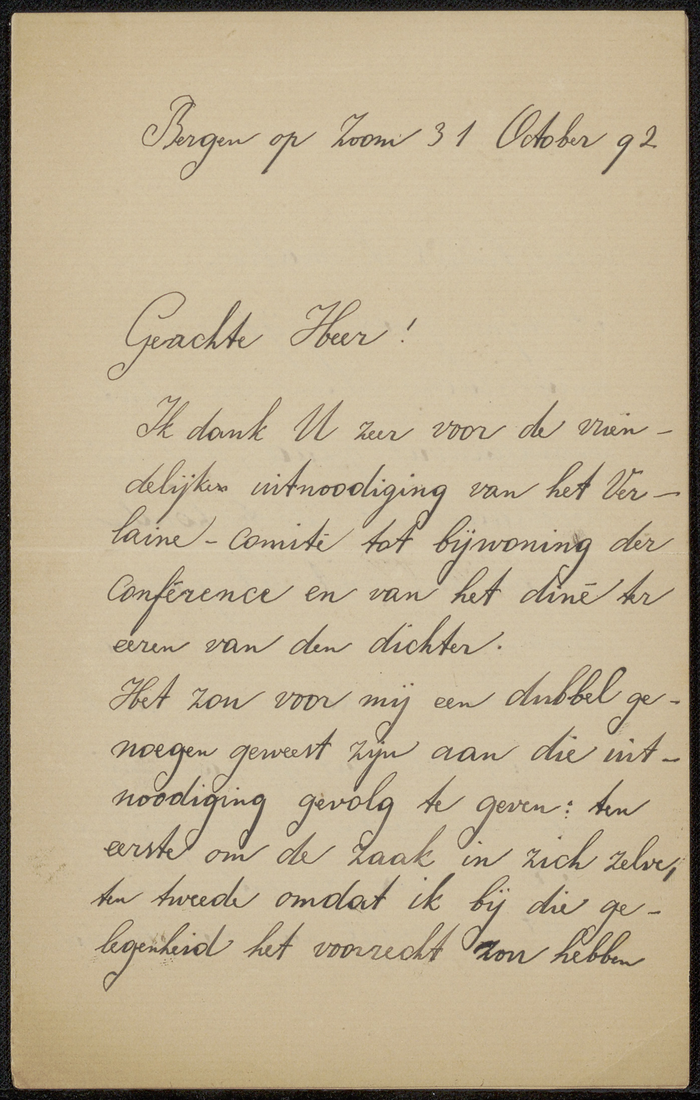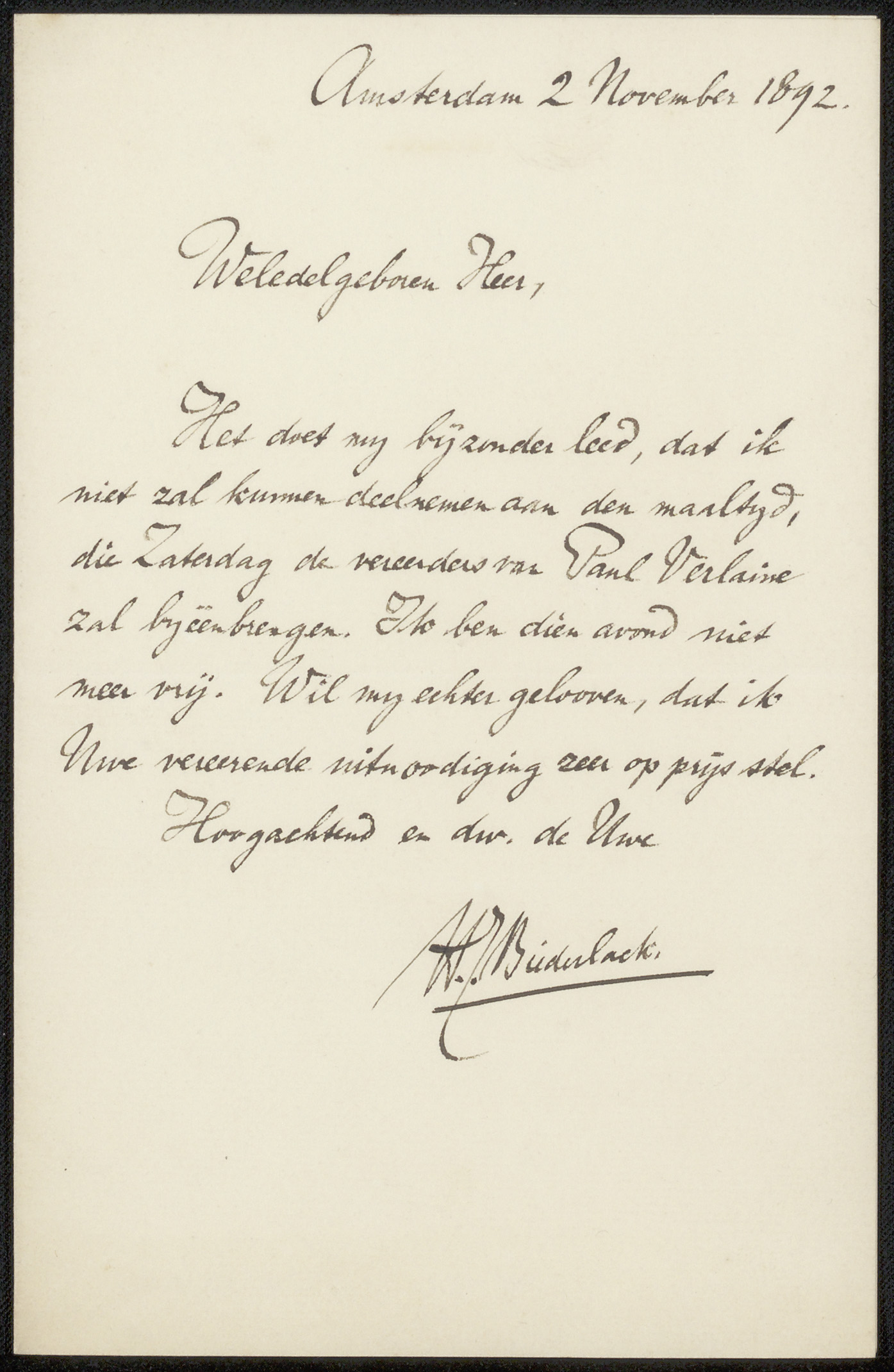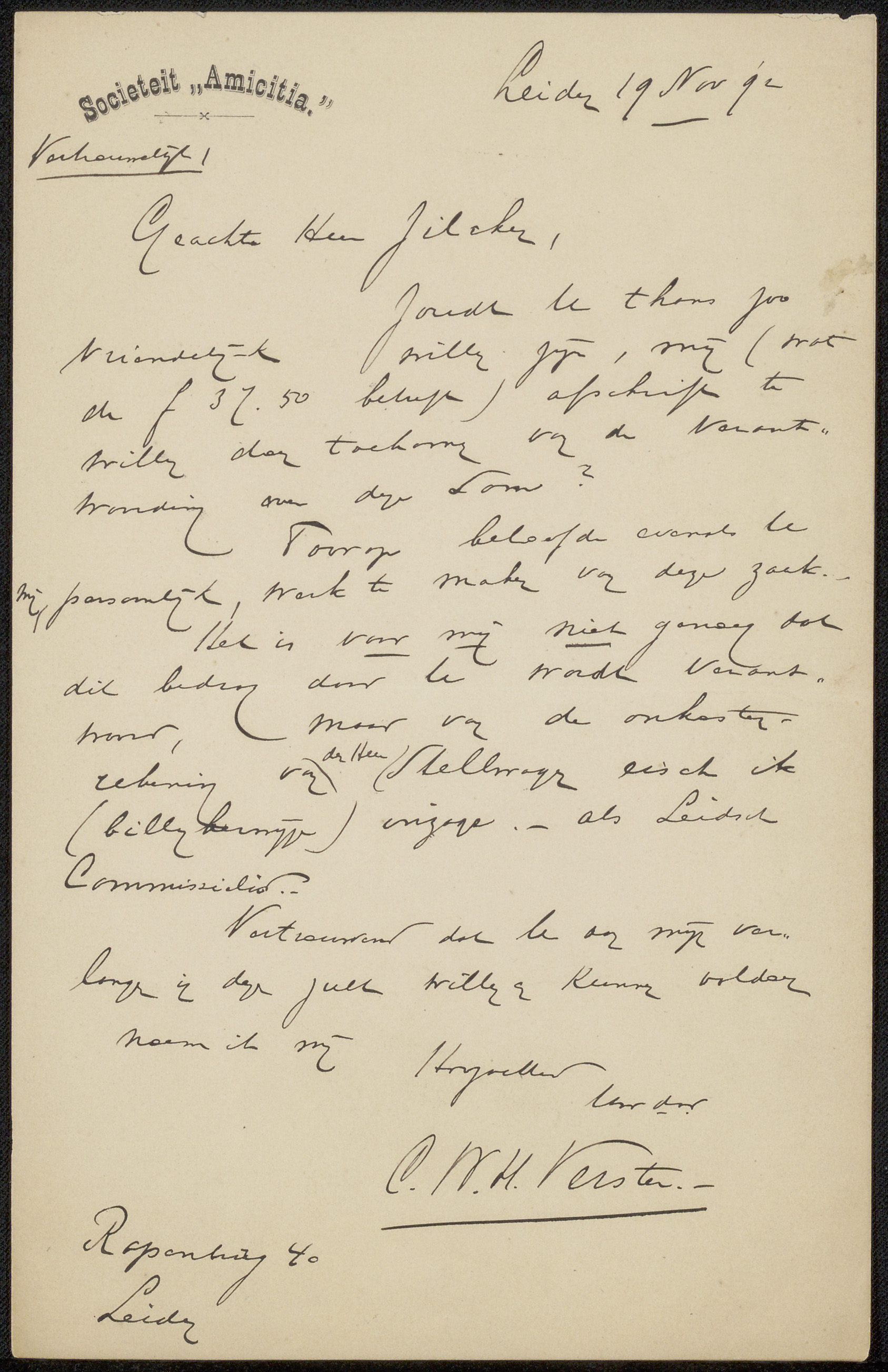 Brief aan Philip Zilcken en Henriette Wilhelmina van...