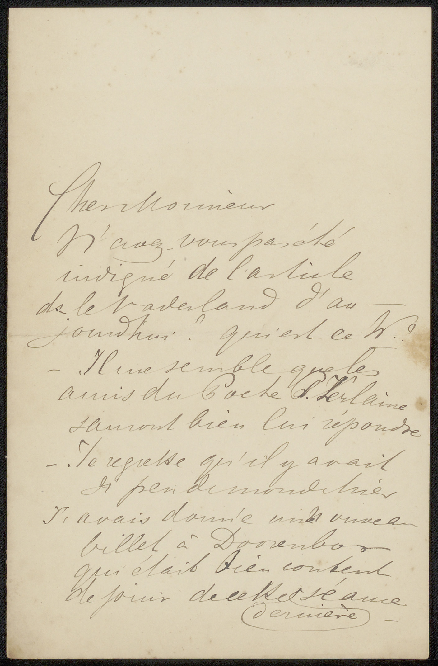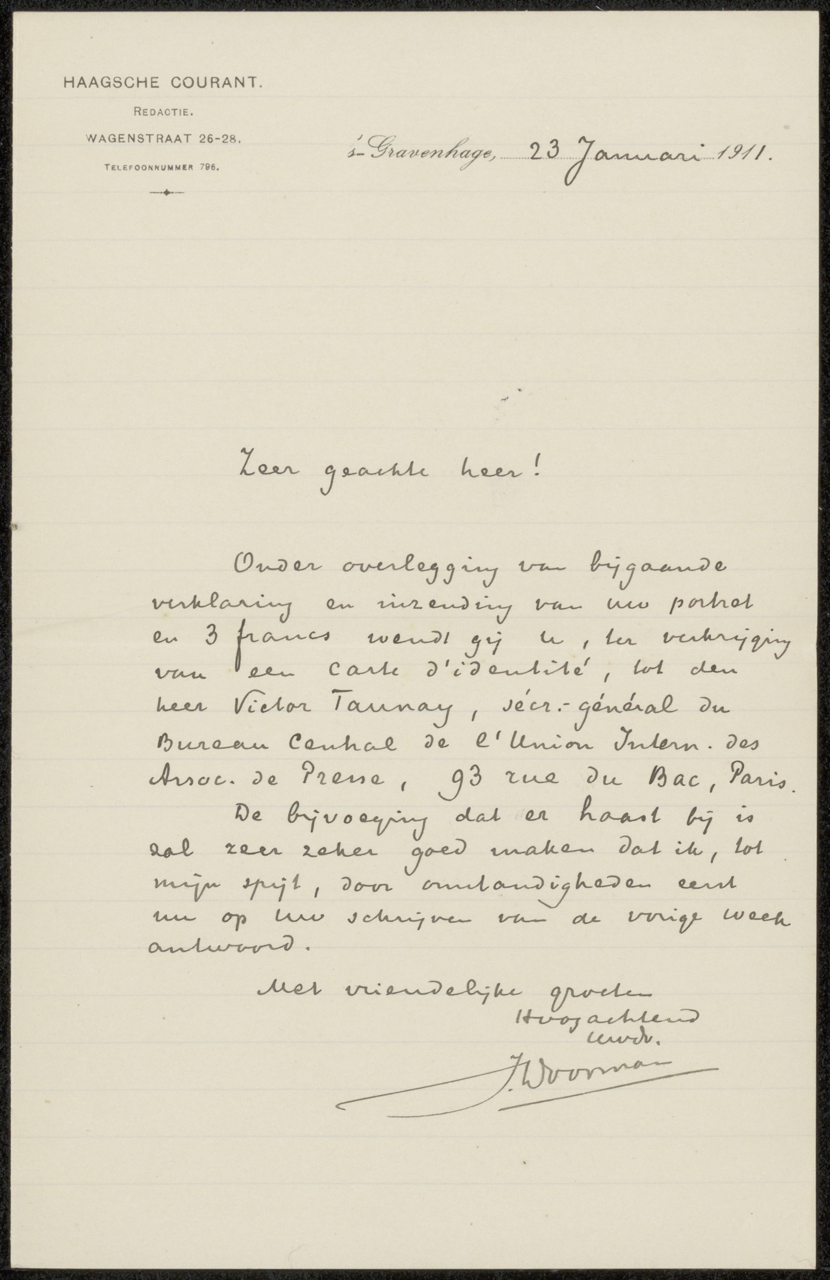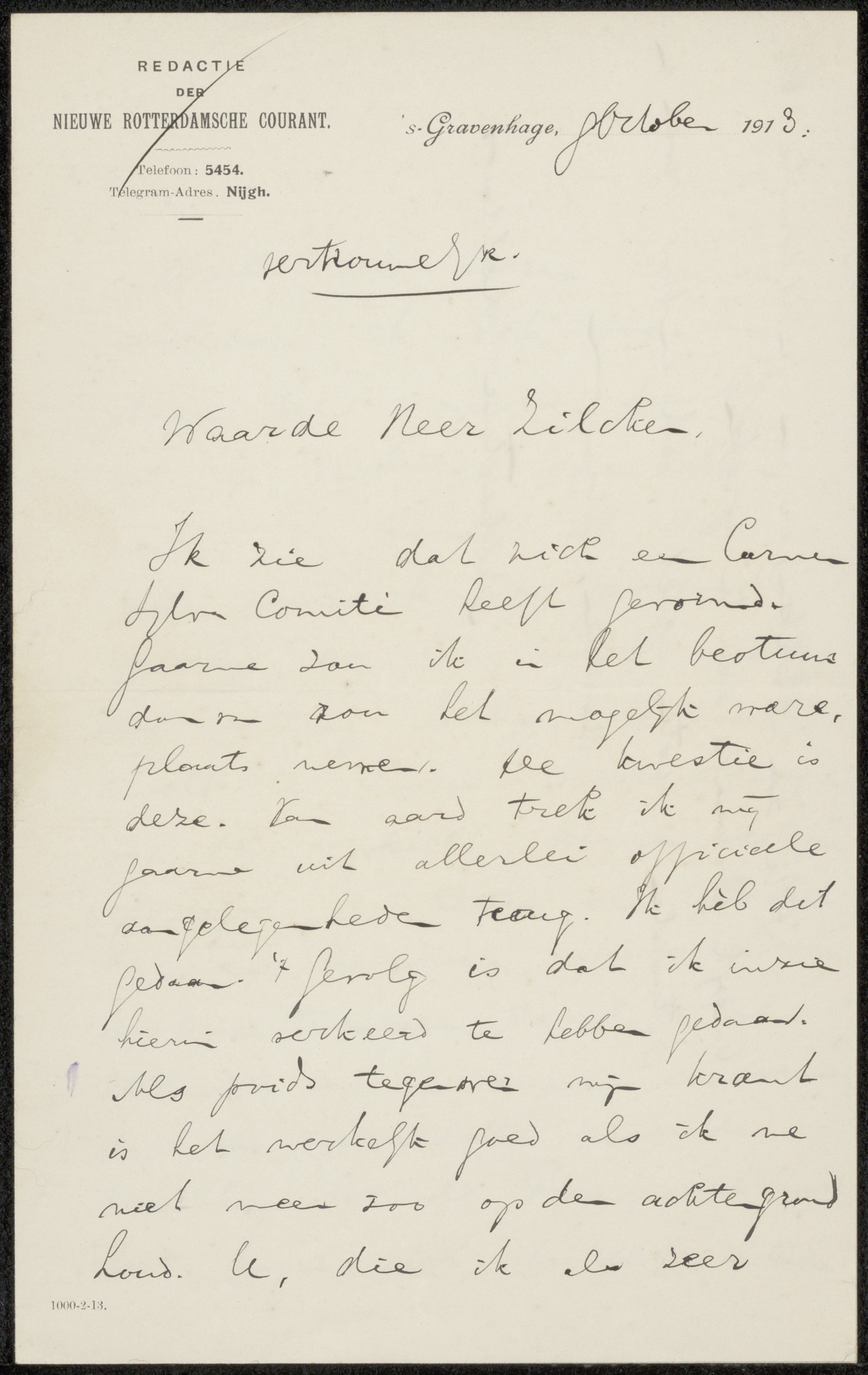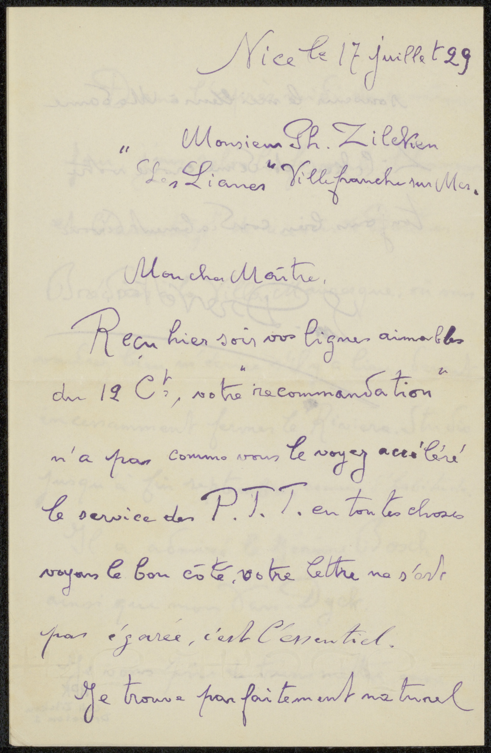 Brief aan Philip Zilcken en Henriette Wilhelmina van...