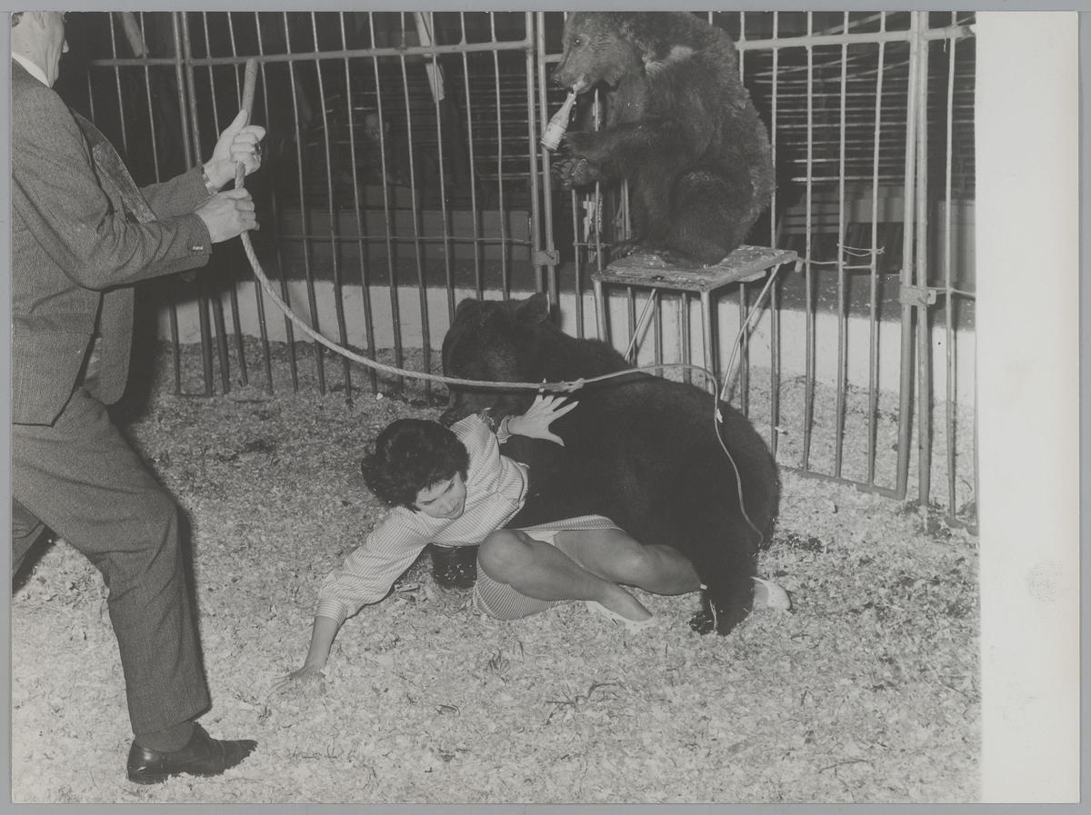 Ria Kuyken wordt gebeten door een beer, 1962