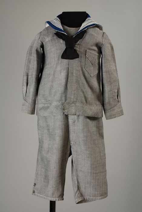 Kindermatrozenpak, donkergrijs-wit visgraatkeper, kn...