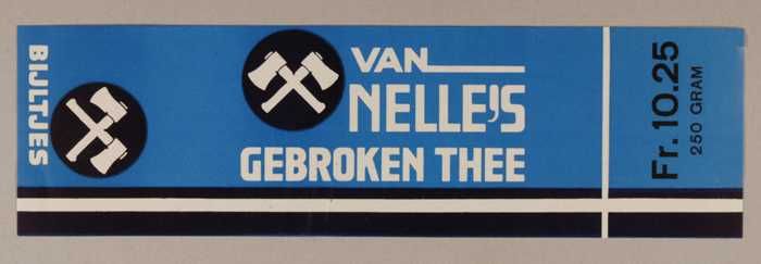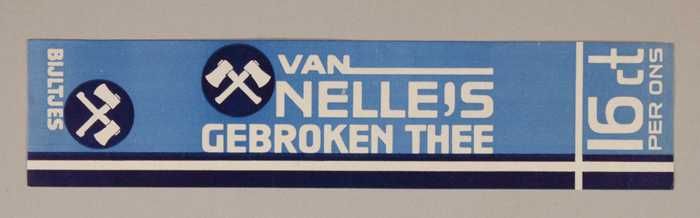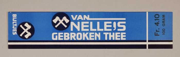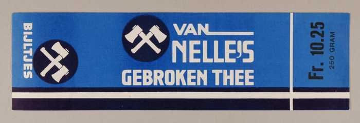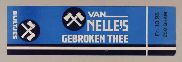 Blauw, papieren label VAN NELLE'S BIJLTJES THEE, 100...