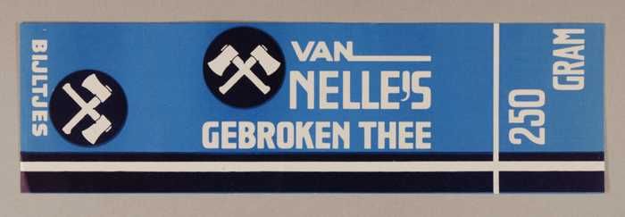 Blauw, papieren label VAN NELLE'S BIJLTJES THEE, 250...