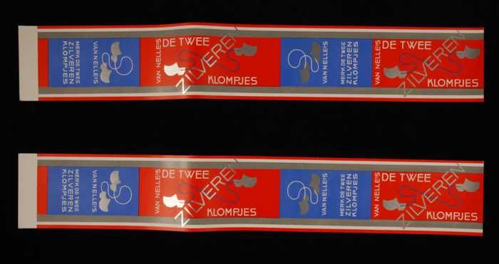 Twee rode, papieren labels VAN NELLE'S DE TWEE ZILVE...