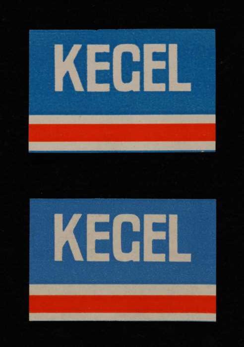 Twee blauw en rode, papieren labels VAN NELLE KEGEL ...
