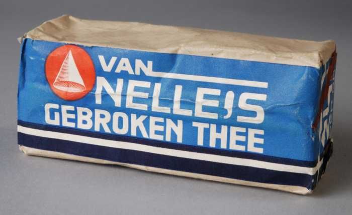 Witte verpakking met blauw en rood label VAN NELLE'S...