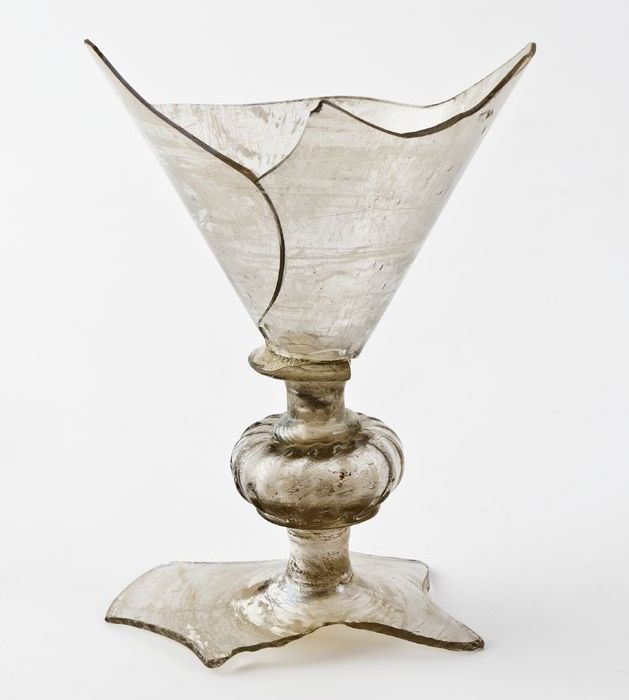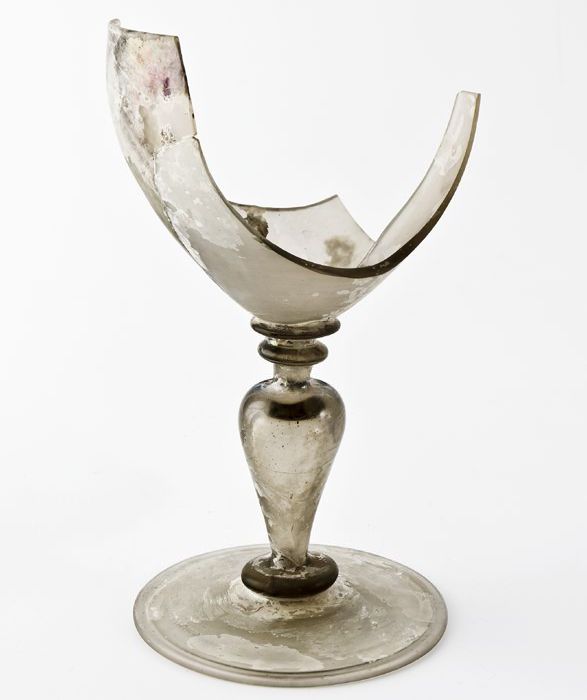 Fragment van voet, stam en kelk van kelkglas in faço...