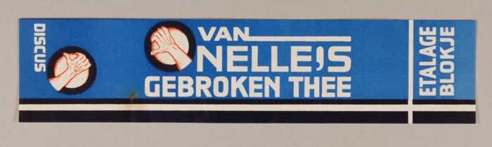 Blauw en rood, papieren label VAN NELLE'S DISCUS THE...