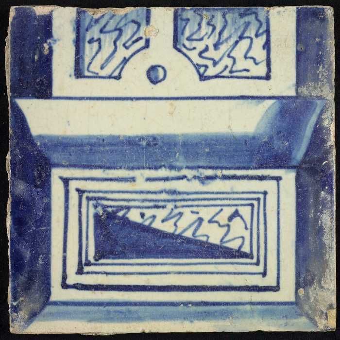 Tegel van schoorsteenpilaster, blauw op wit, onderzi...