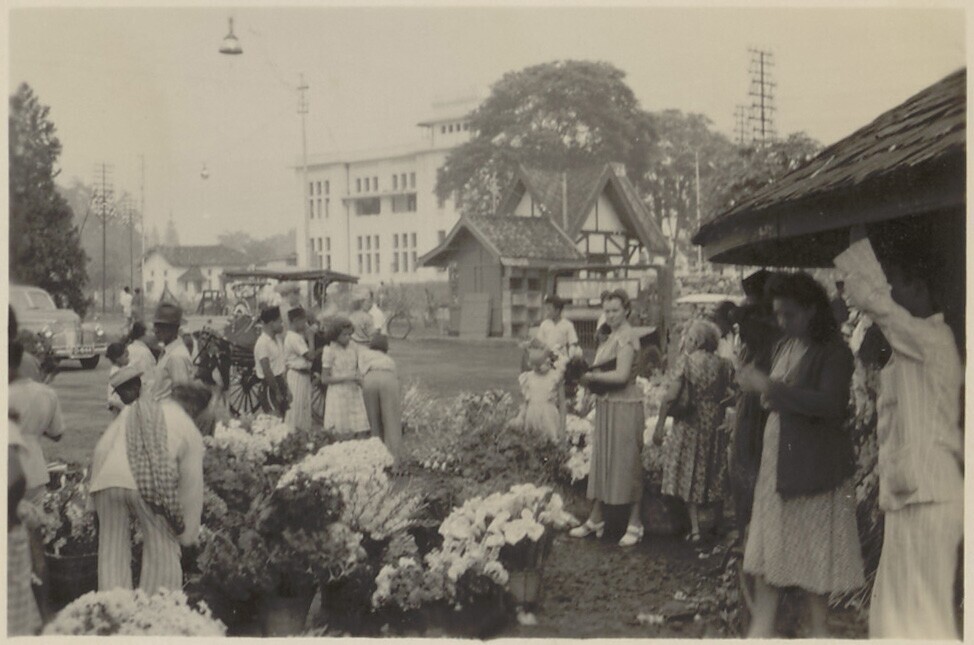 Javaanse verkopers en kopers temidden van vliegers e...