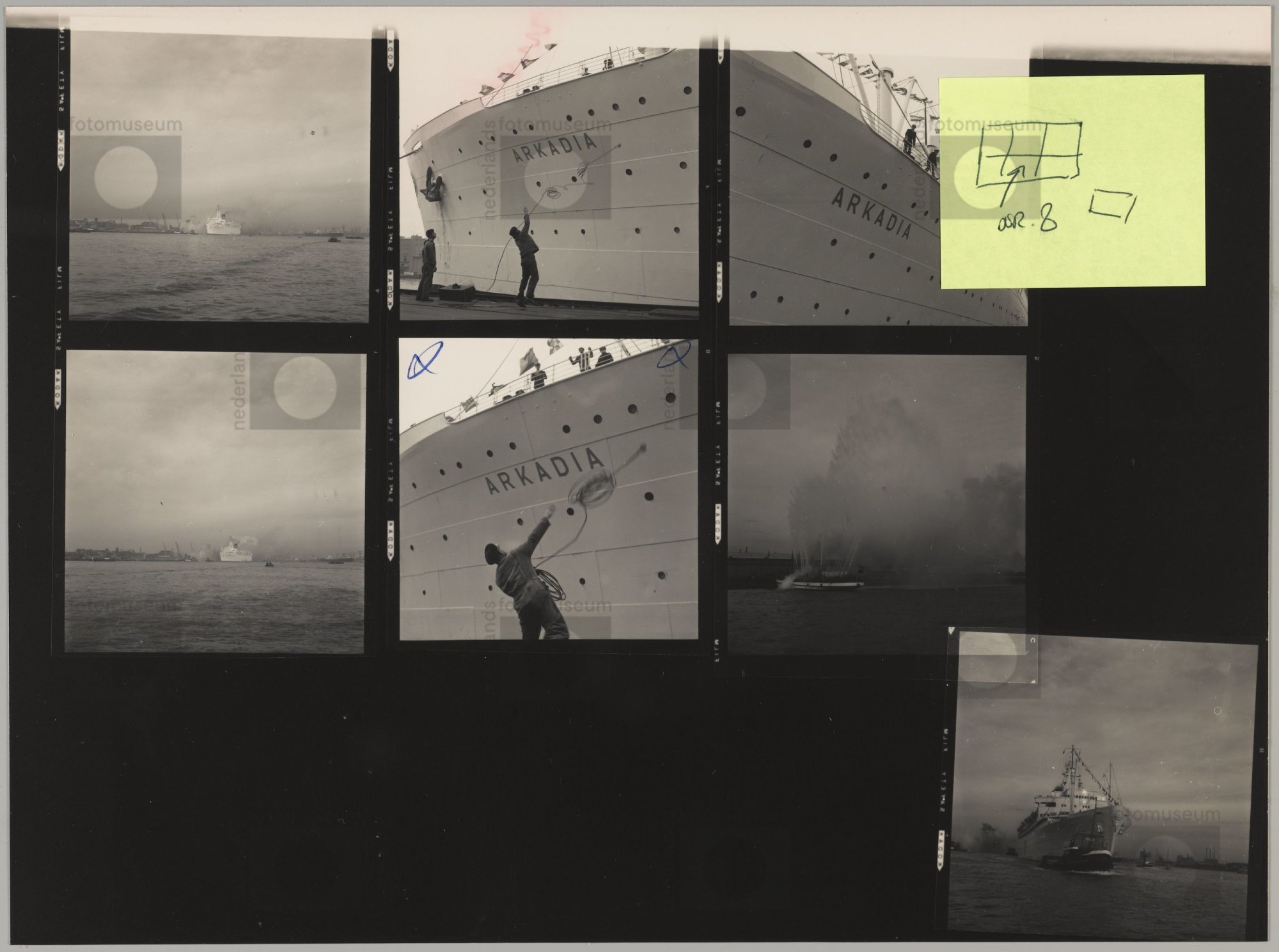Amsterdam. Schip Arkadia meert aan in de haven