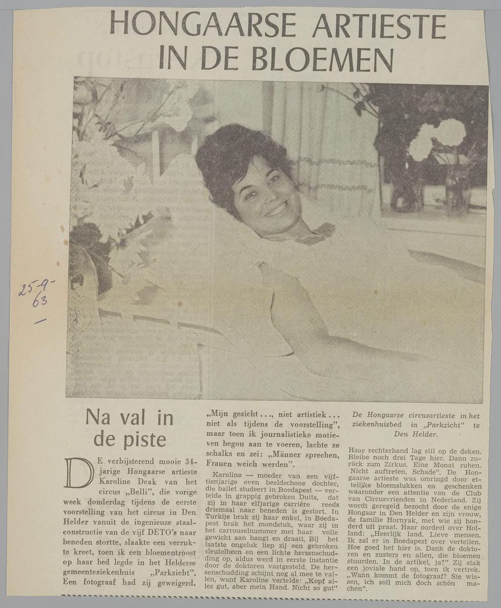 Krantenartikel: In Den Helder. Circusartieste Caroli...