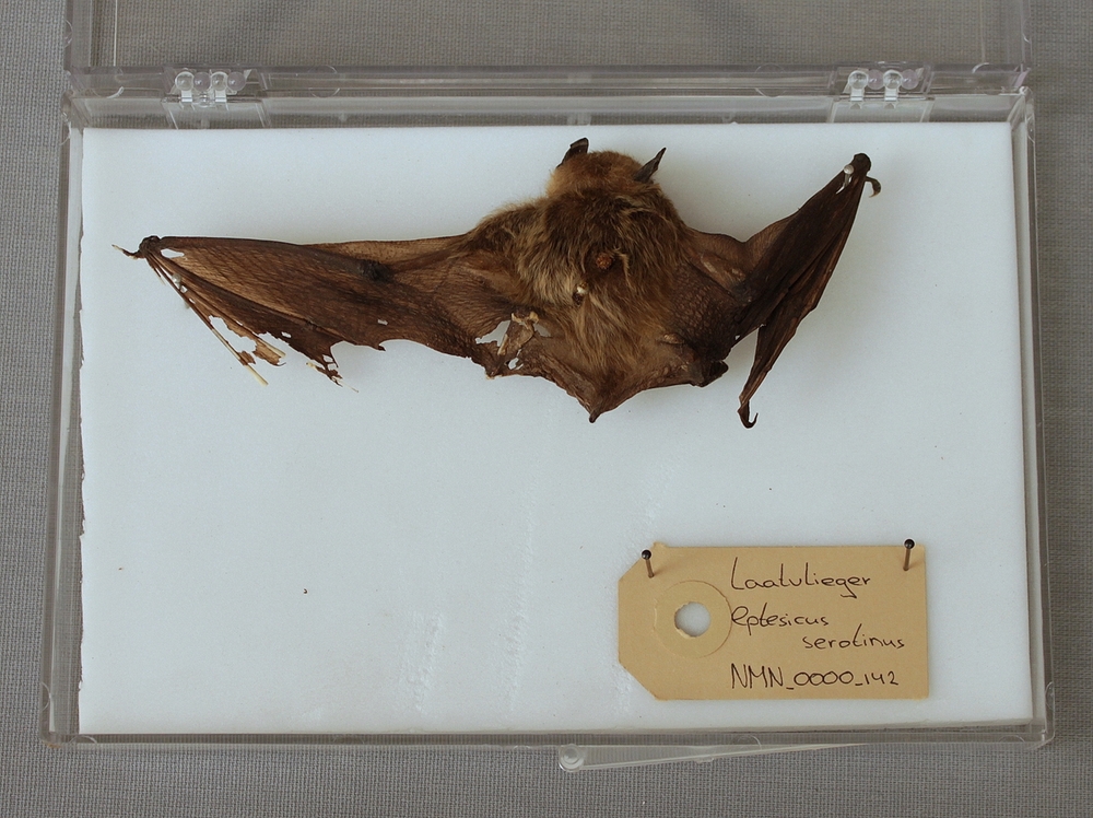 Laatvlieger; vleugels gespreid; in doosje