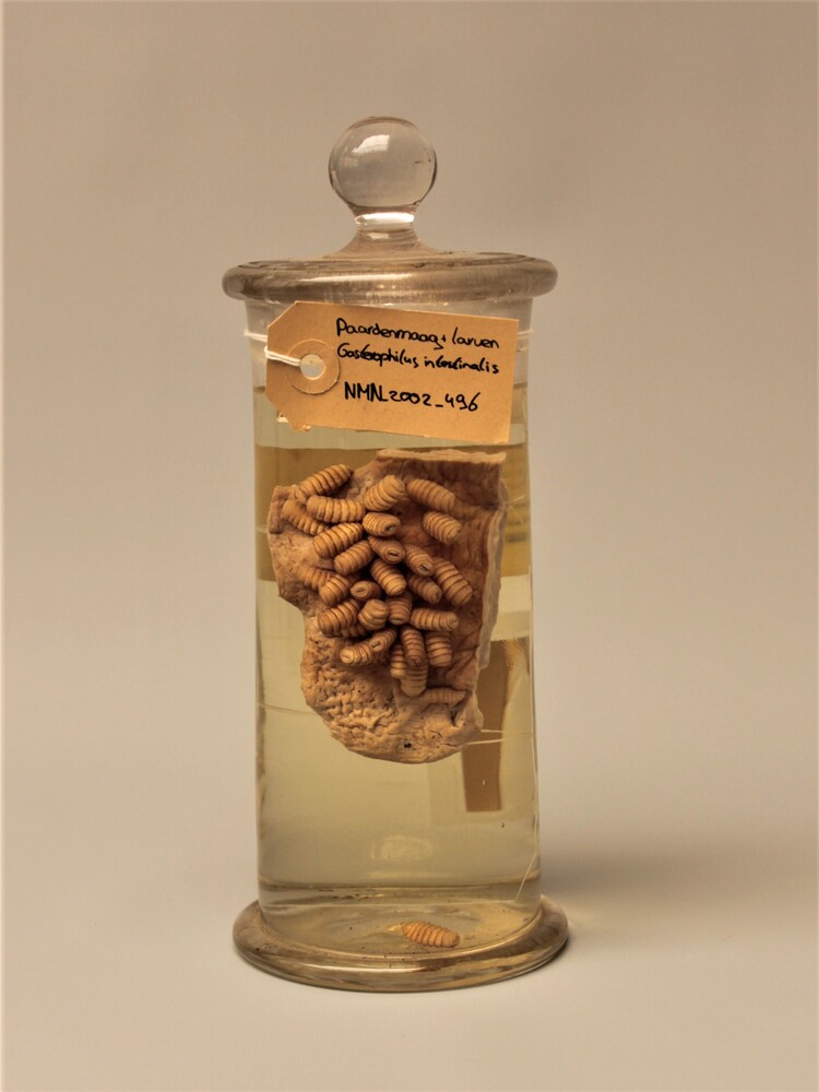 Paard; maagwand bezet met larven van paardenhorzel