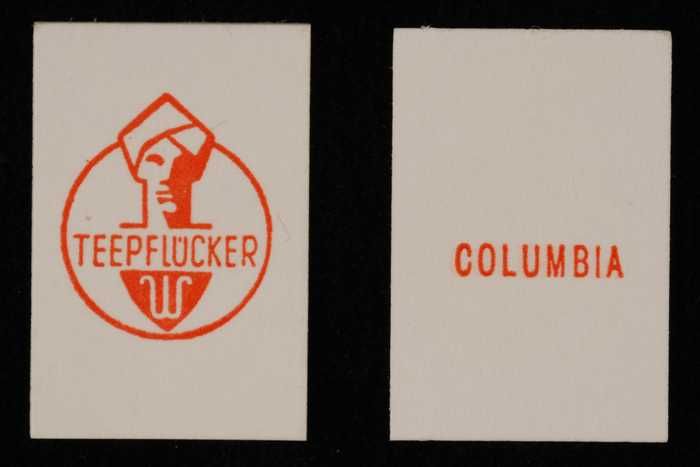Twee witte, kartonnen labels VAN NELLE TEEPFLÜCKER T...
