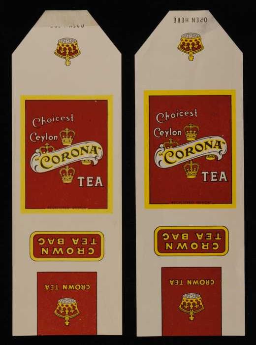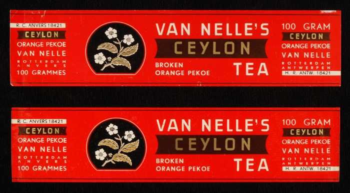 Twee rode, papieren labels VAN NELLE'S CEYLON THEE, ...