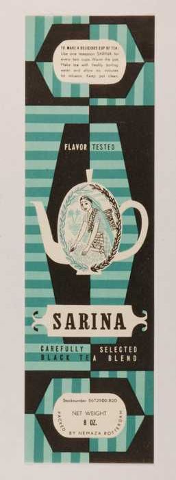 Wit en groen, papieren label VAN NELLE SARINA THEE, ...