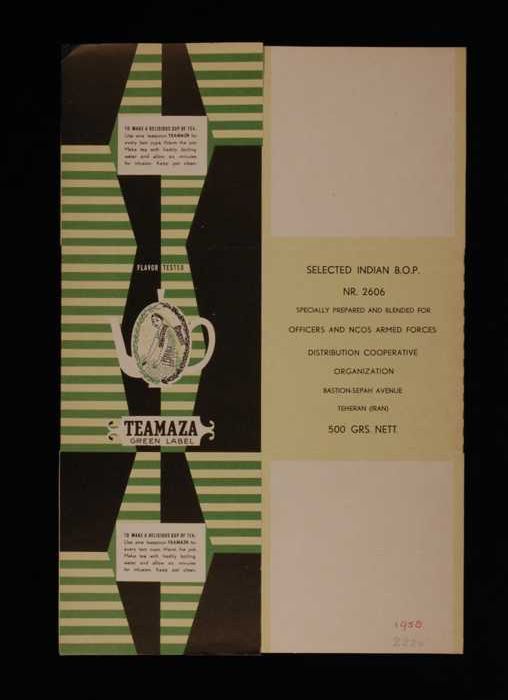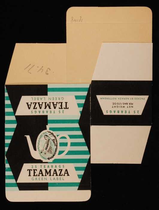 Wit en groen, papieren label VAN NELLE TEAMAZA THEE,...
