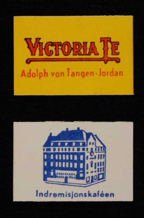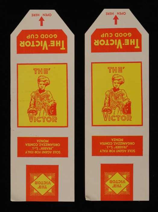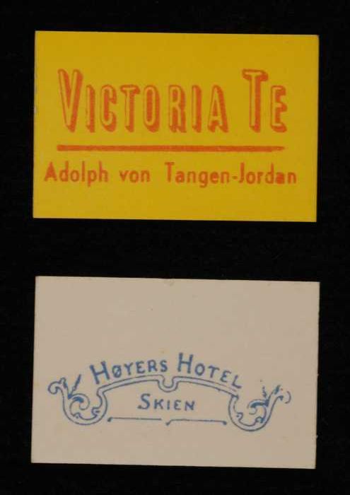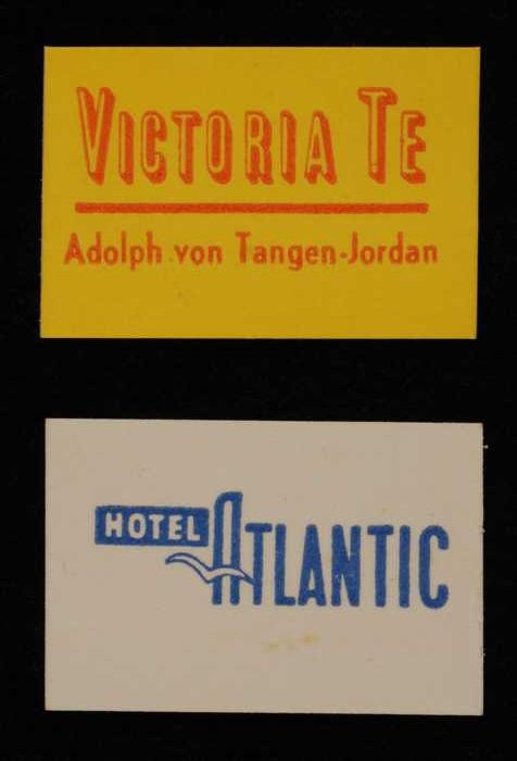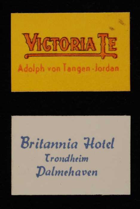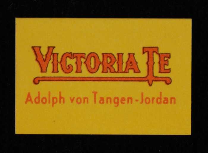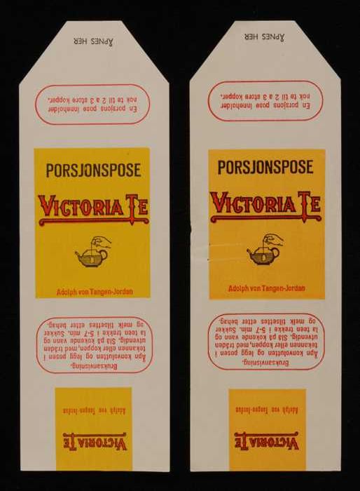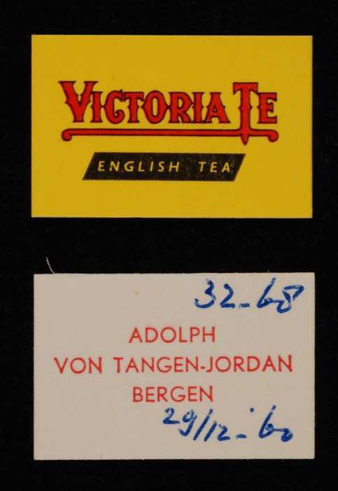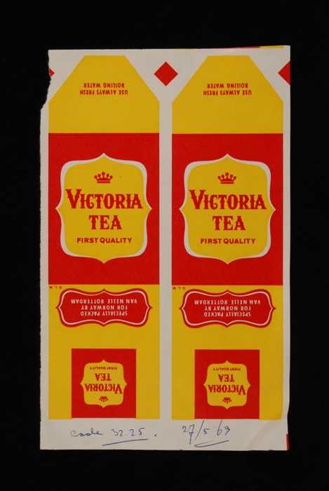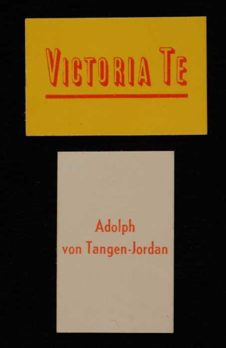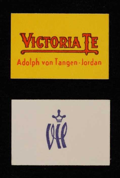 Twee witte, kartonnen labels VAN NELLE VICTORIA THEE...