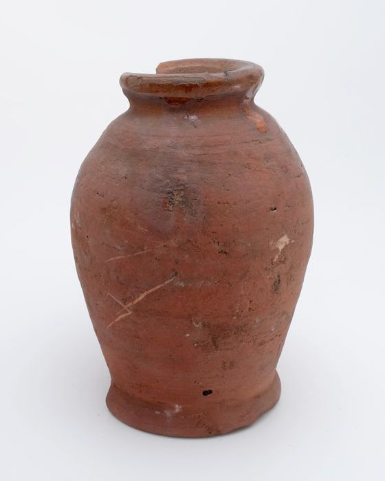 Aardewerk pot op standring, balustervorm, werd gebru...