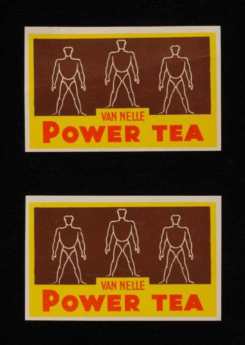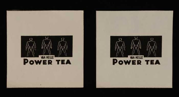 Twee witte, papieren labels VAN NELLE POWER THEE