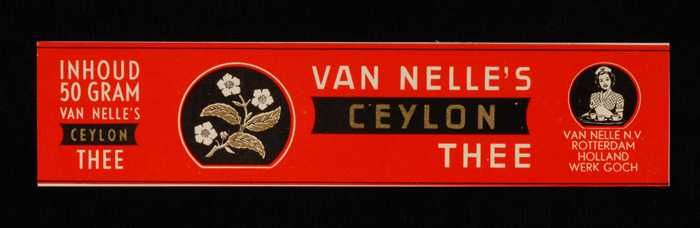 Rood, papieren label VAN NELLE'S CEYLON THEE, 25 gra...