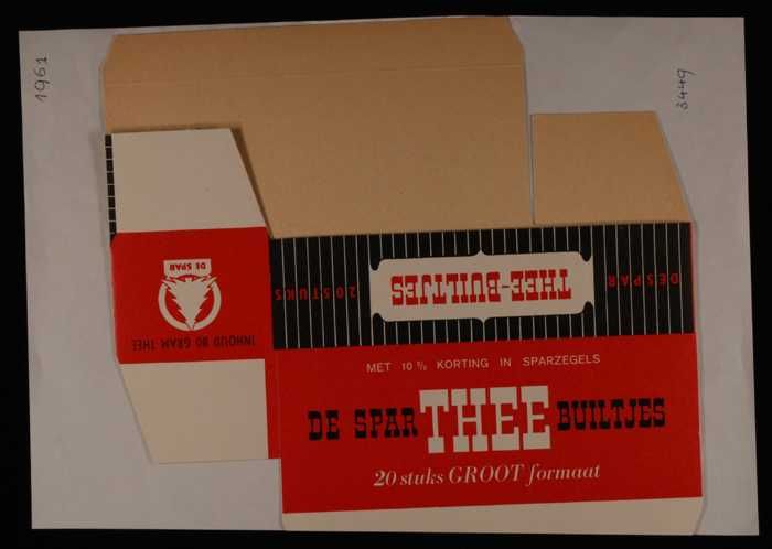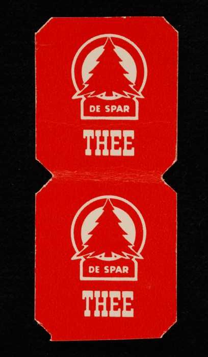 Rood, kartonnen label DE SPAR THEE, 1 theezakje