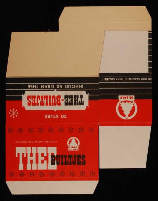 Ongevouwen, rood en zwarte, kartonnen doos DE SPAR T...