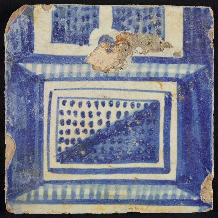 Tegel van schoorsteenpilaster, blauw op wit, onderzi...