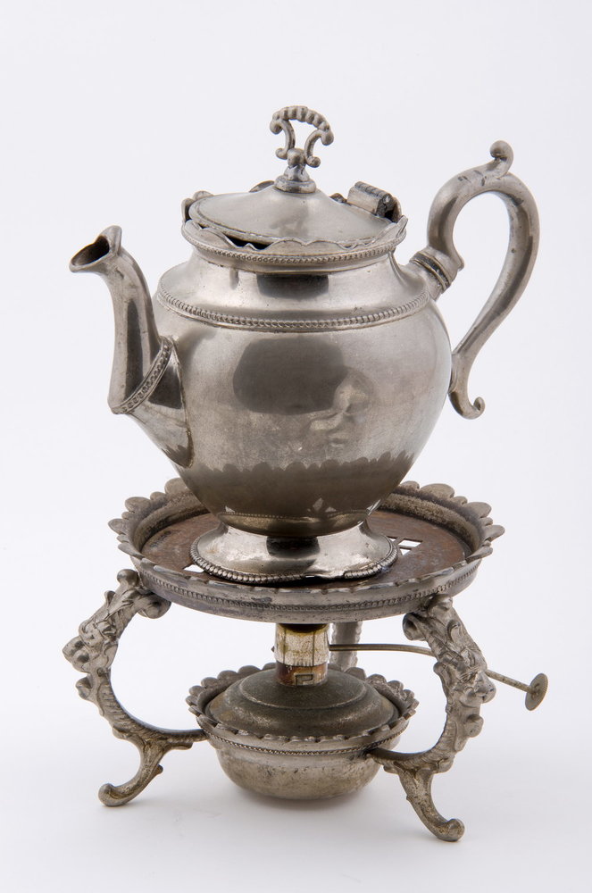 Theepot met comfoor van alboïd, waarschijnlijk verva...