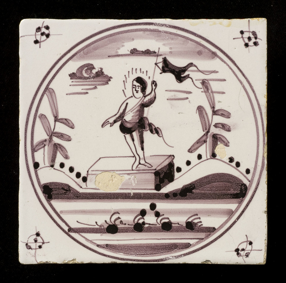 Tegel van keramiekm et tinglazuur, voorstellende: Ze...