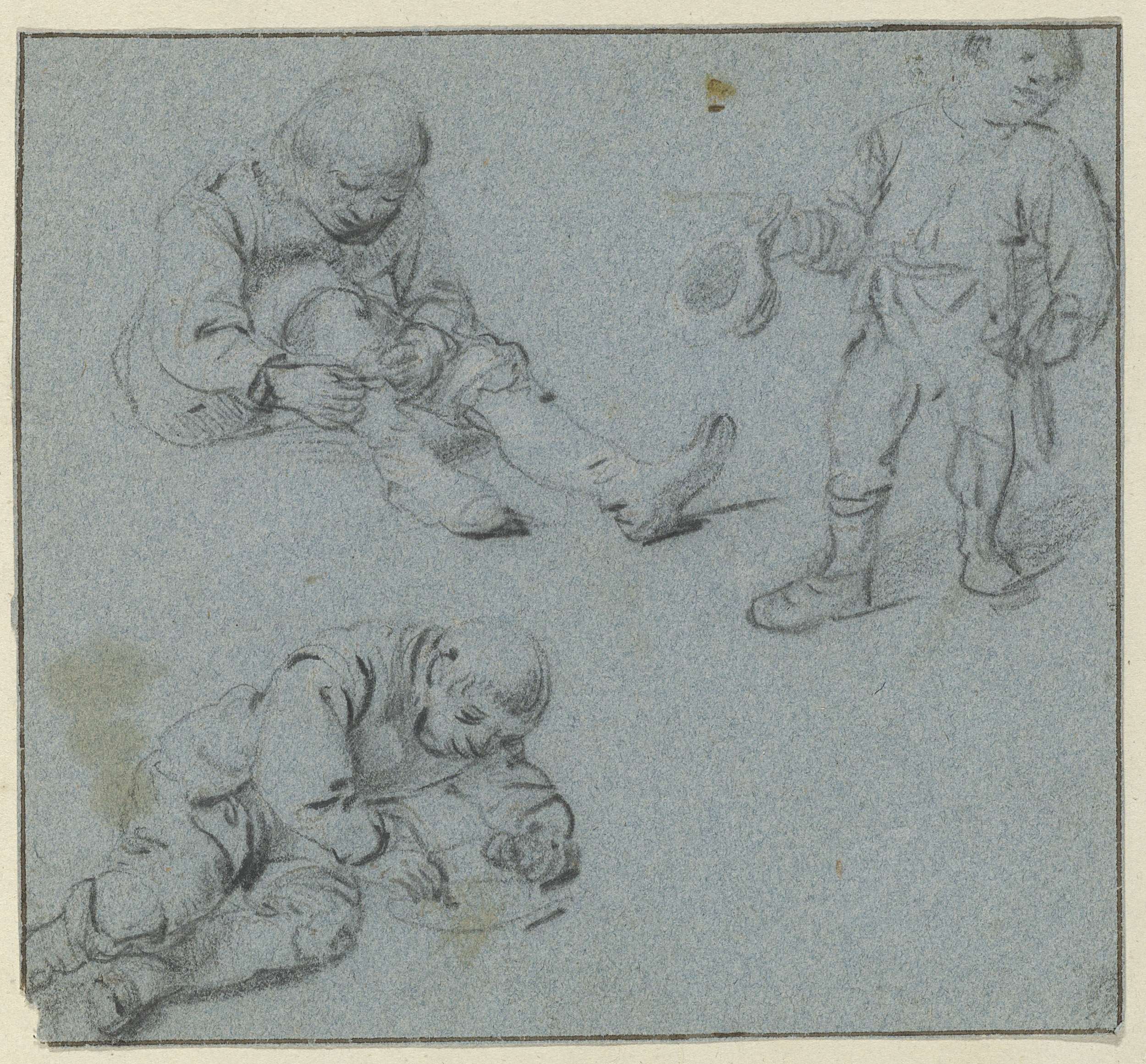 Studie met een zittende, staande en liggende jongen