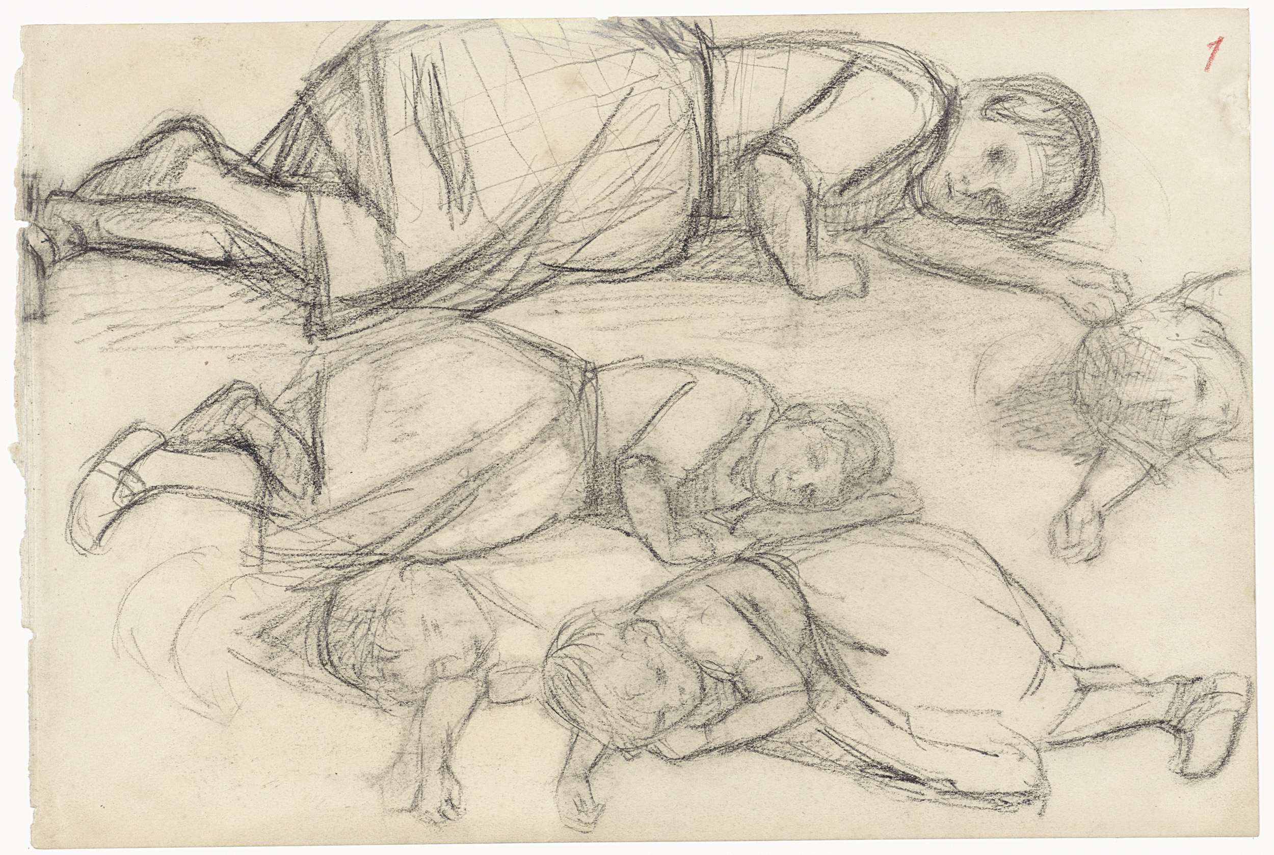 Figuurstudie van een liggende jongen