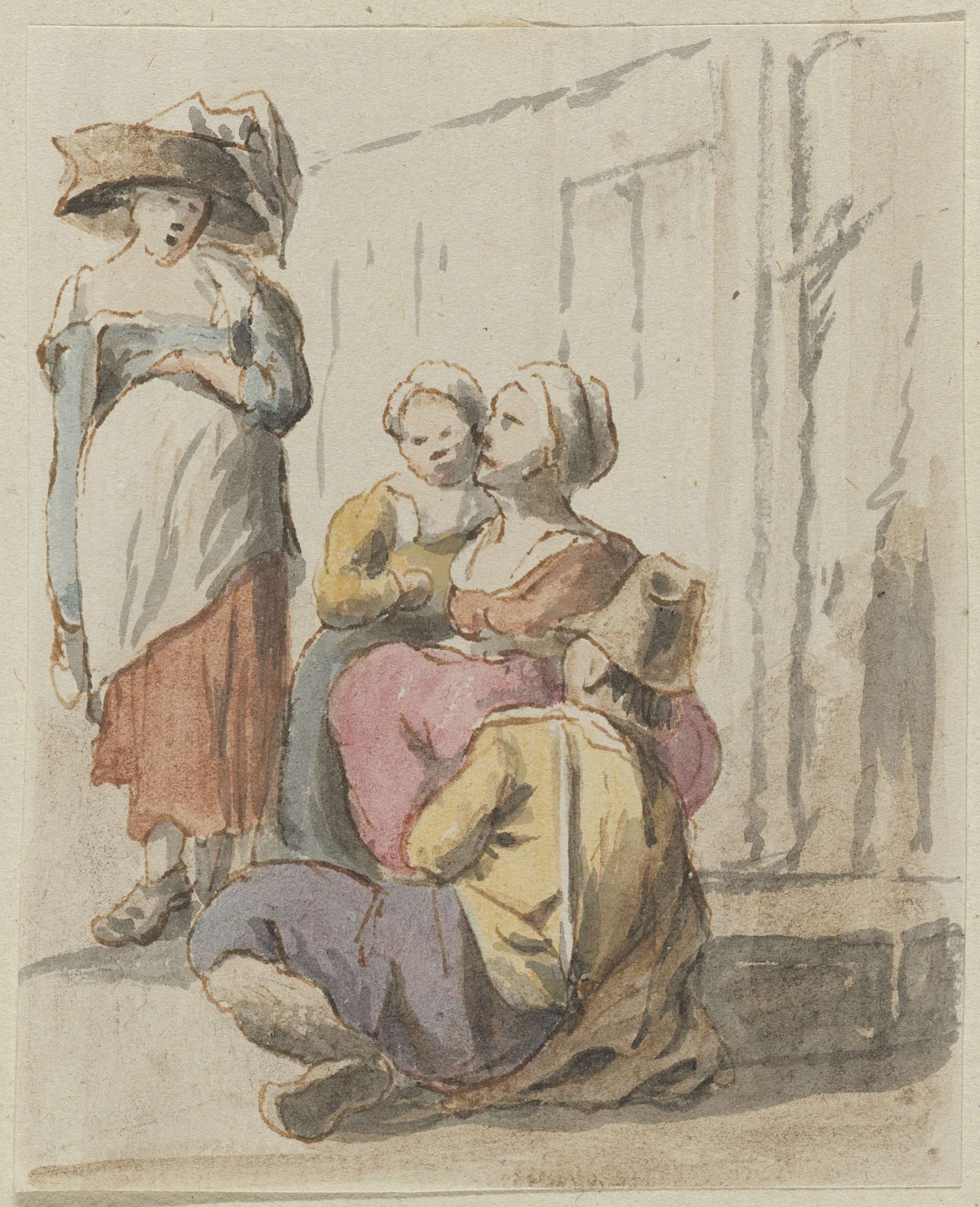 Studie van een moeder die haar kind draagt