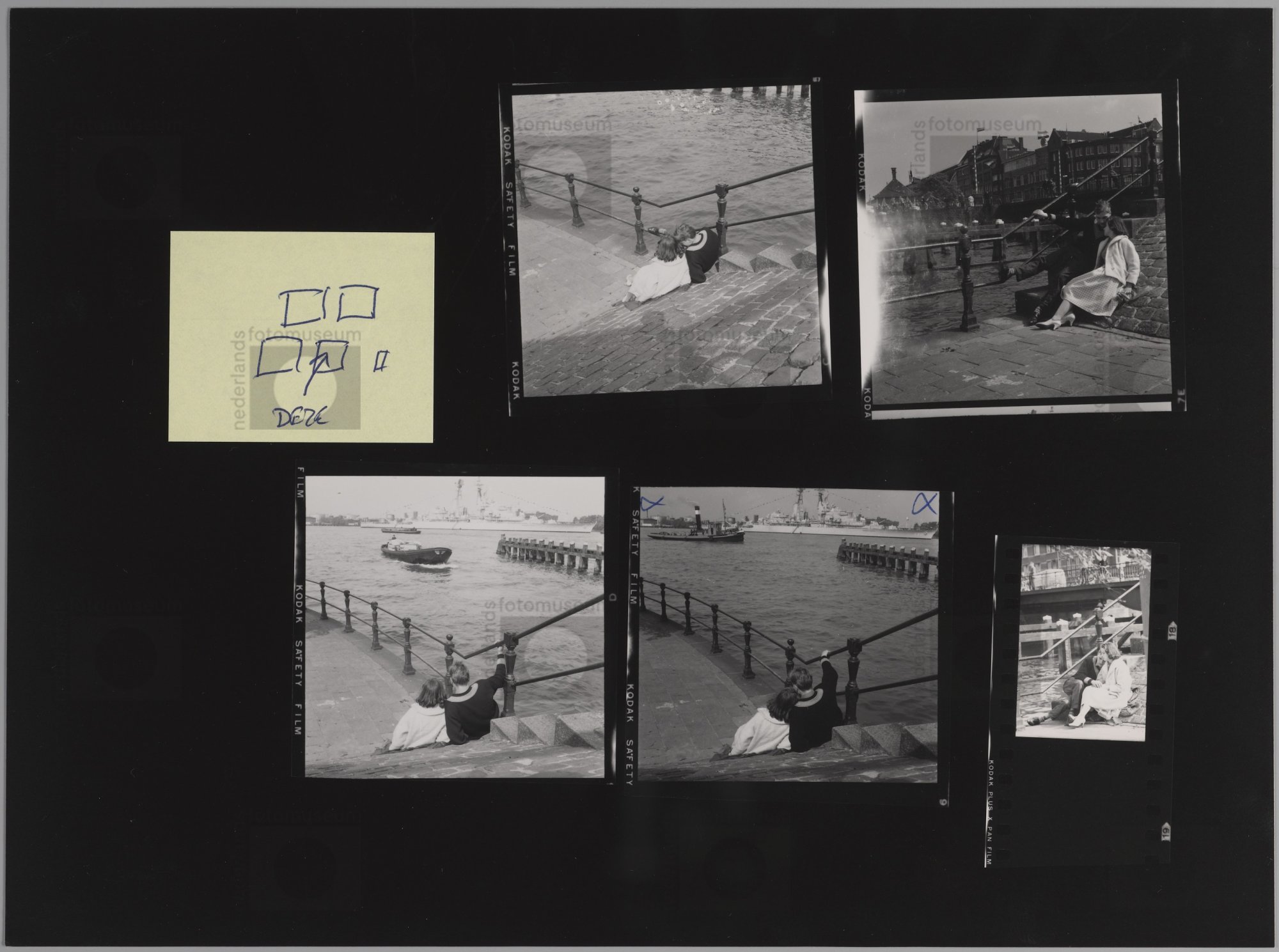 Amsterdam, De Ruijterkade.Verliefd paartje zit op tr...