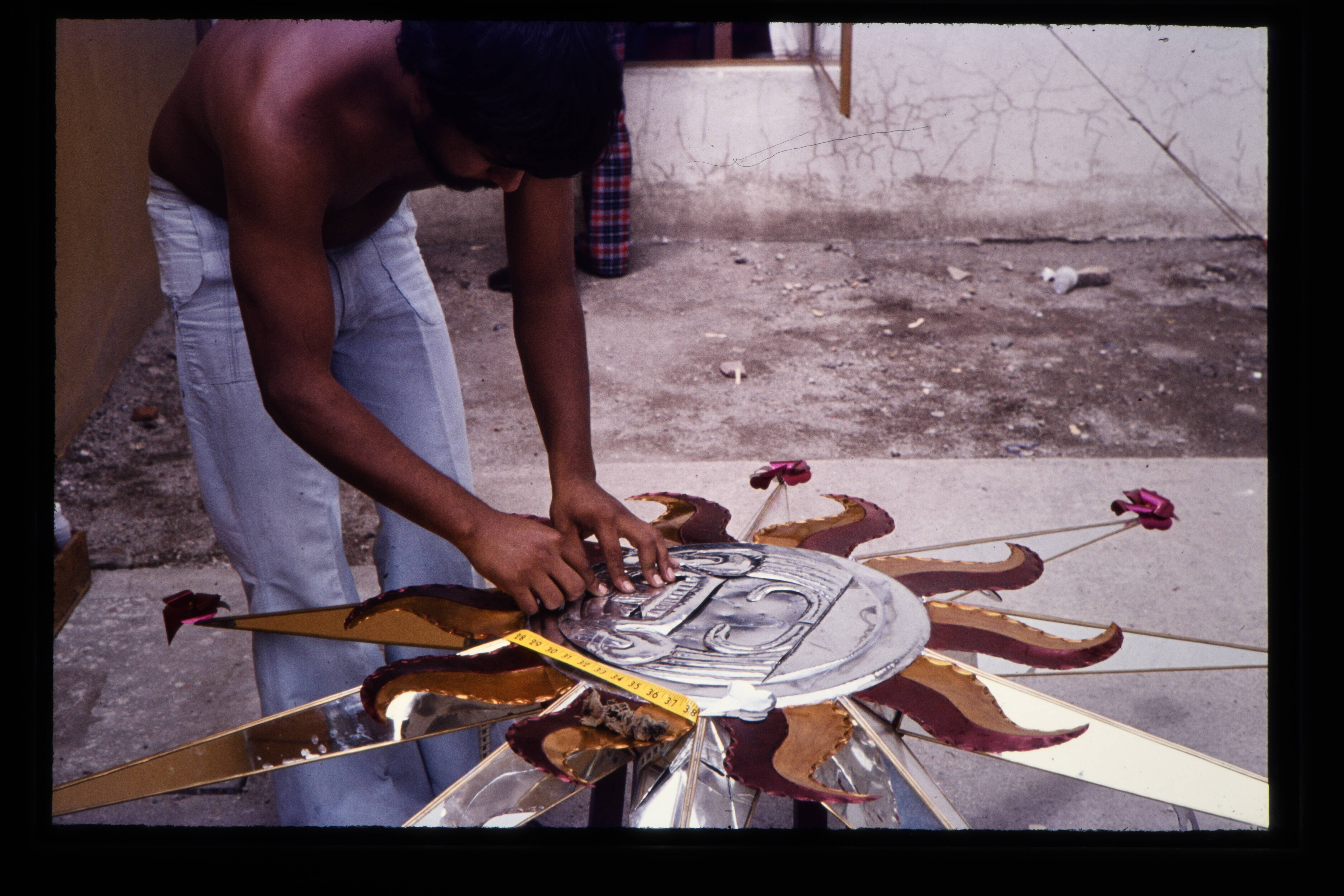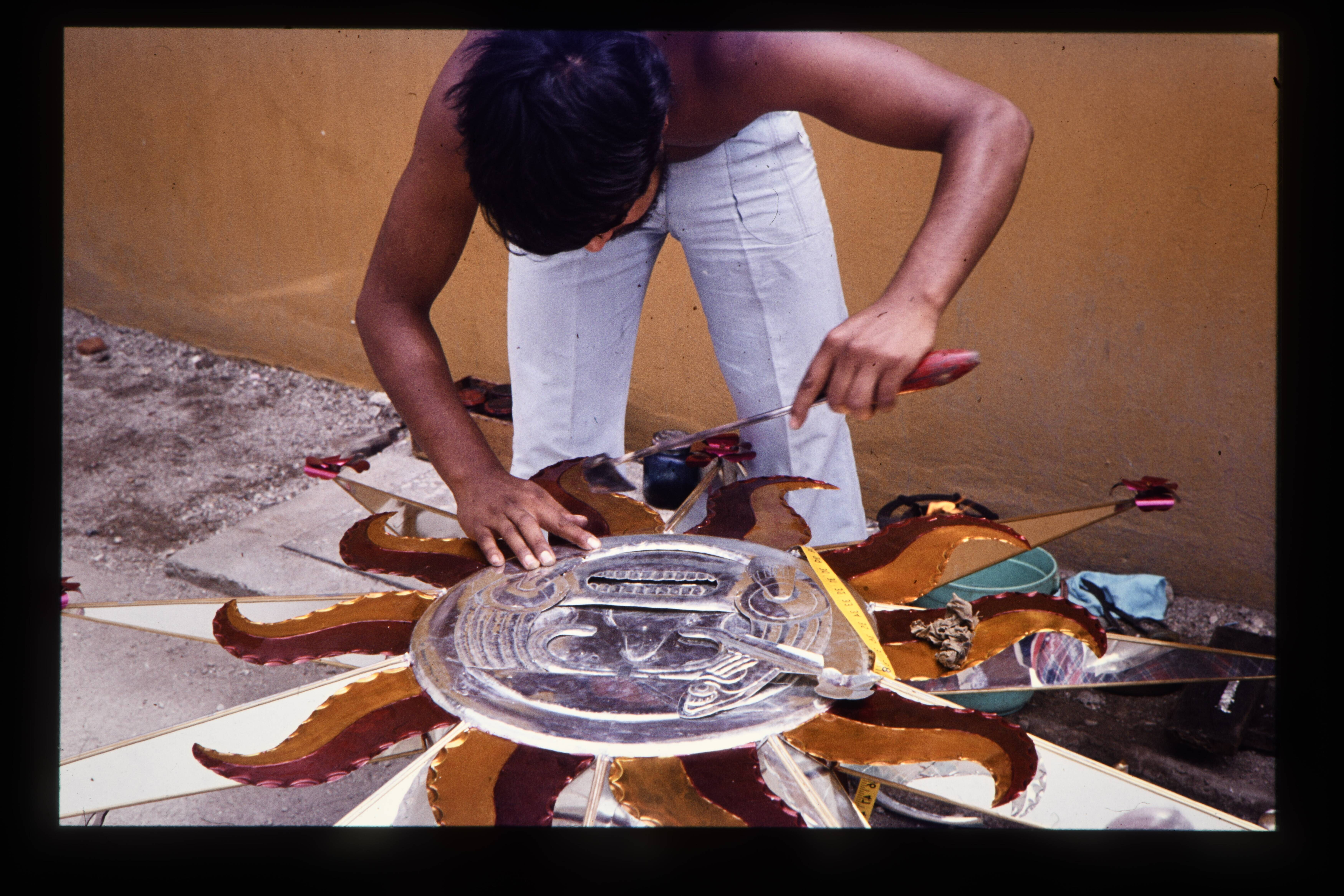 'Het vervaardigen van een blikken masker. Monte Albá...