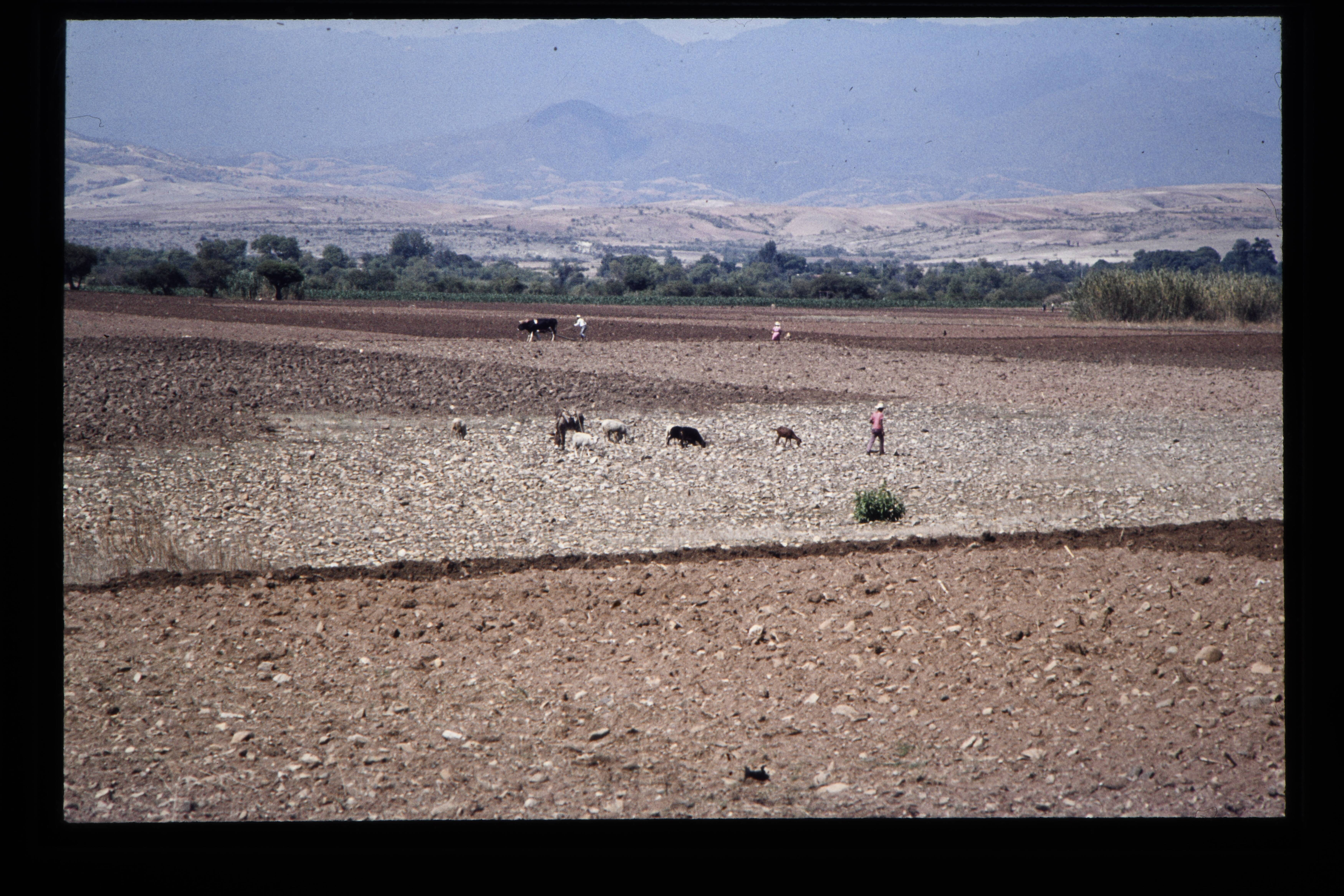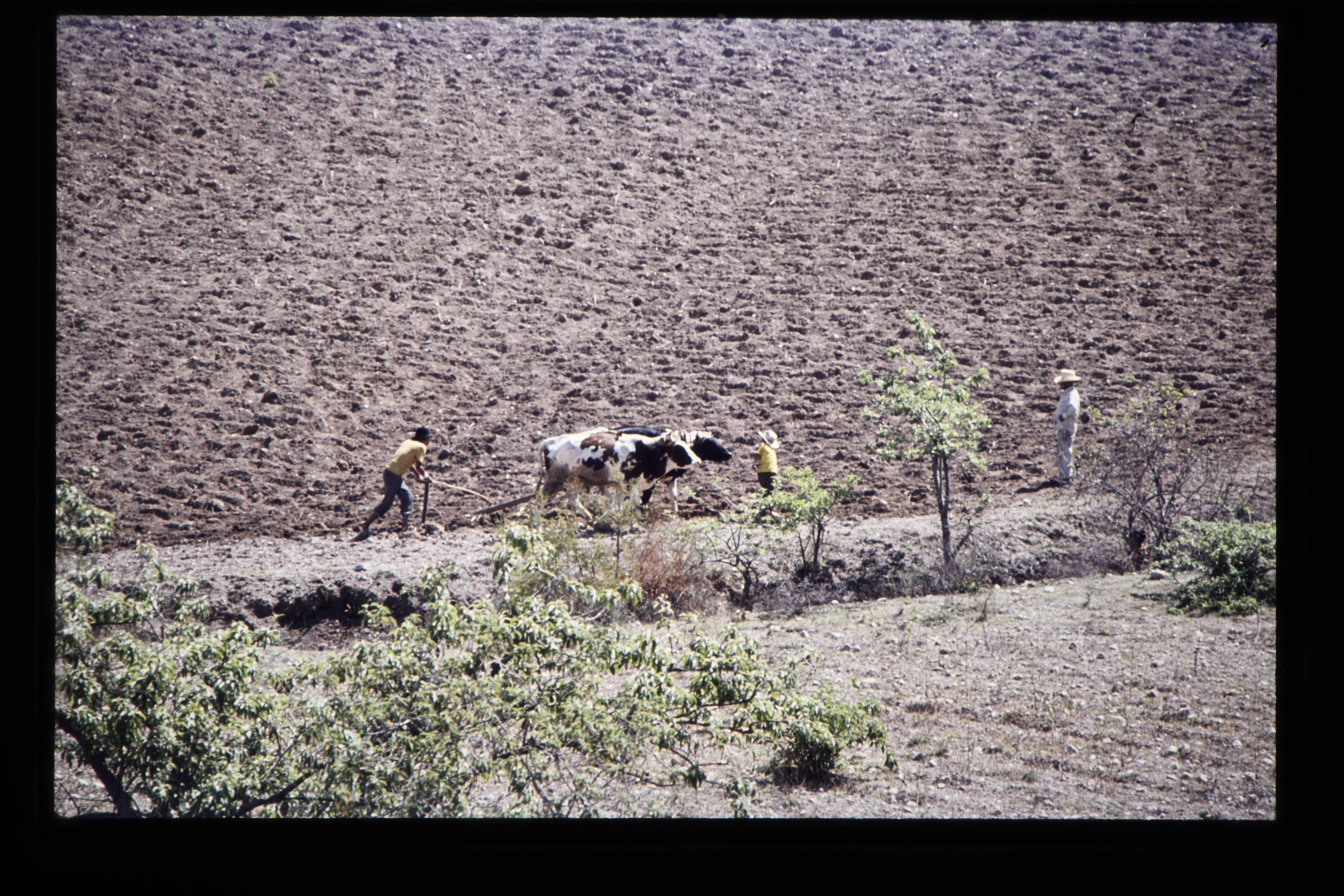 'Boeren ploegen de rode aarde bij Oaxaca.'