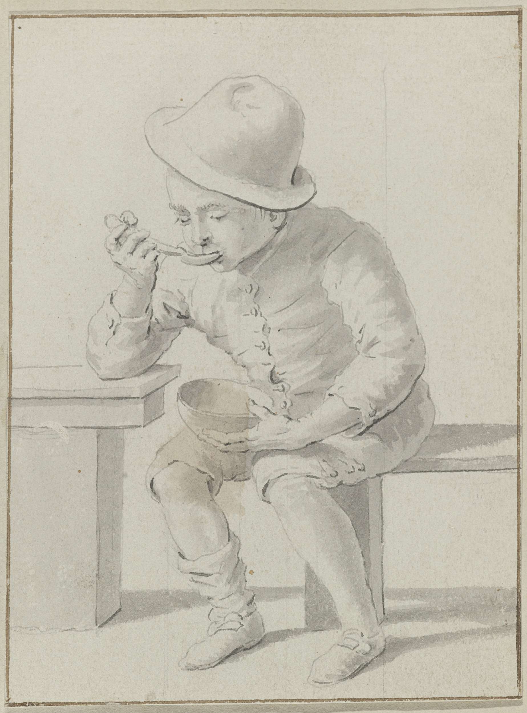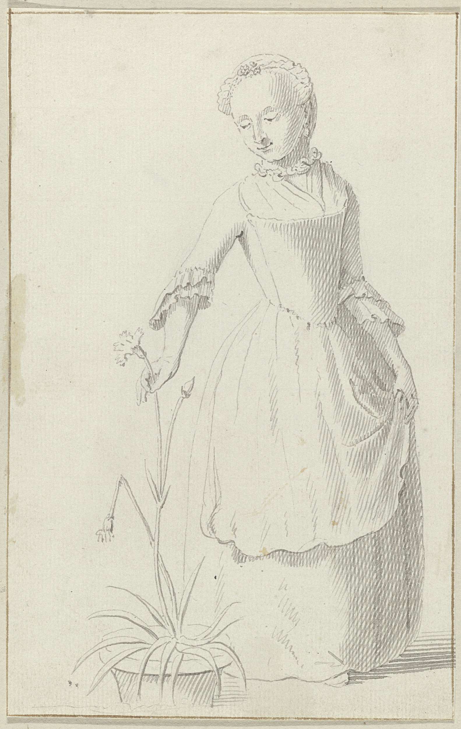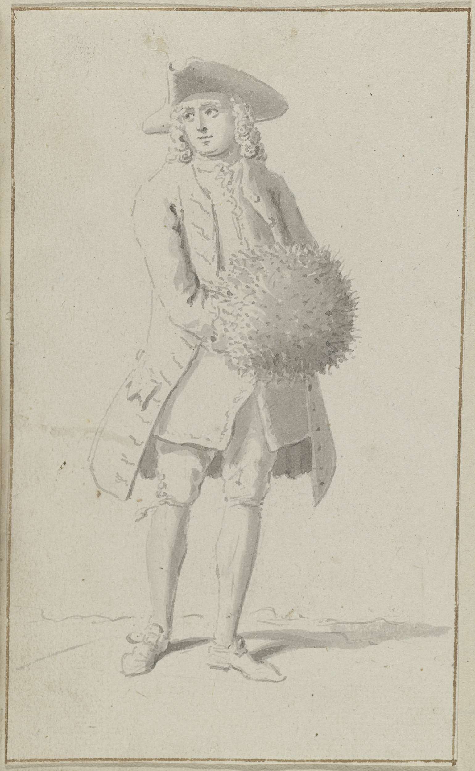Op stoel zittende vrouw en vrouw met waaier op de ru...