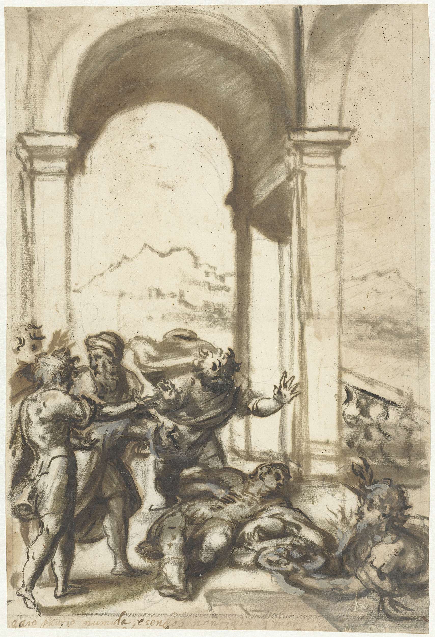 Mythologische scène (Aeneas ontvlucht Troje?)