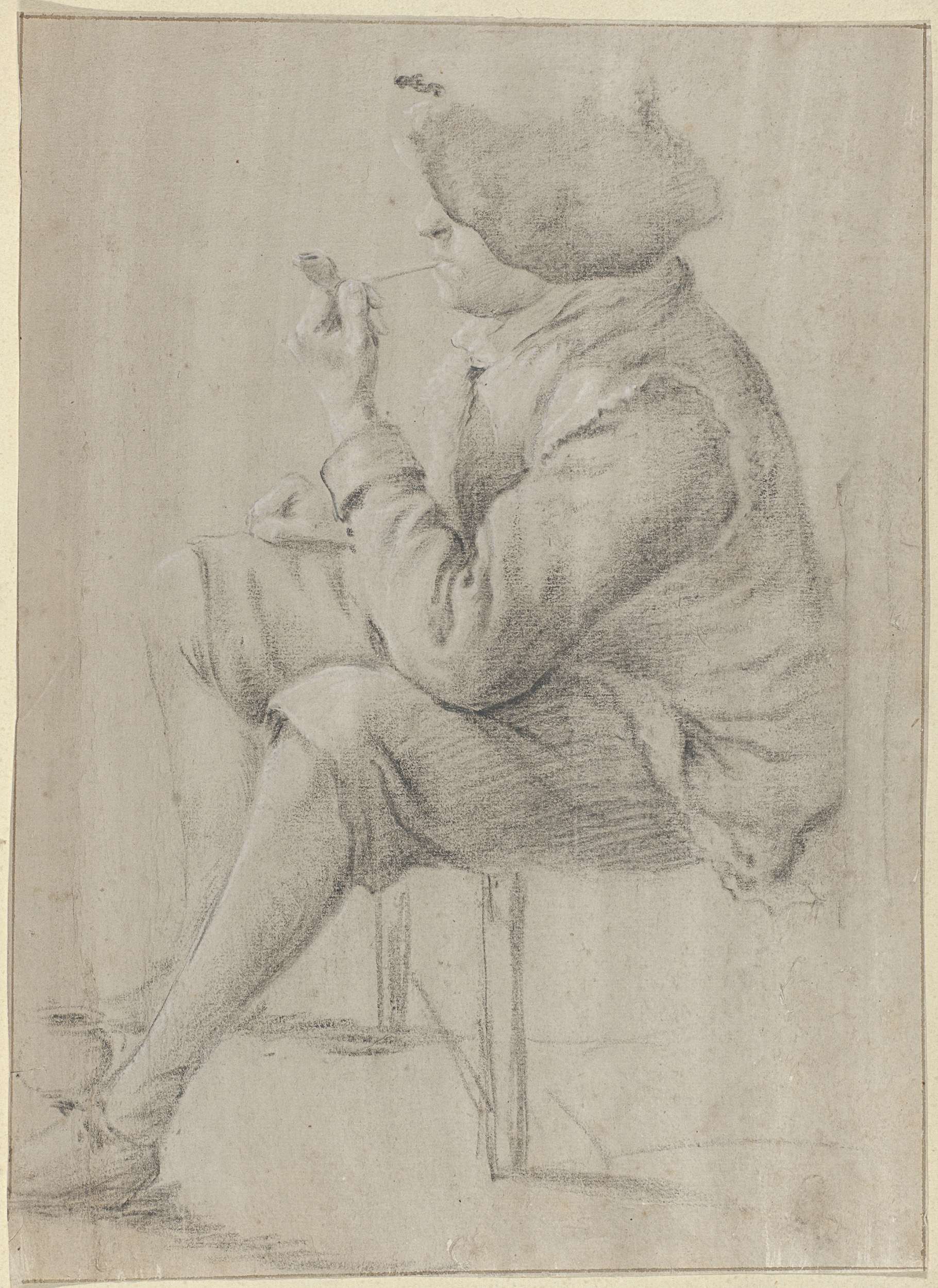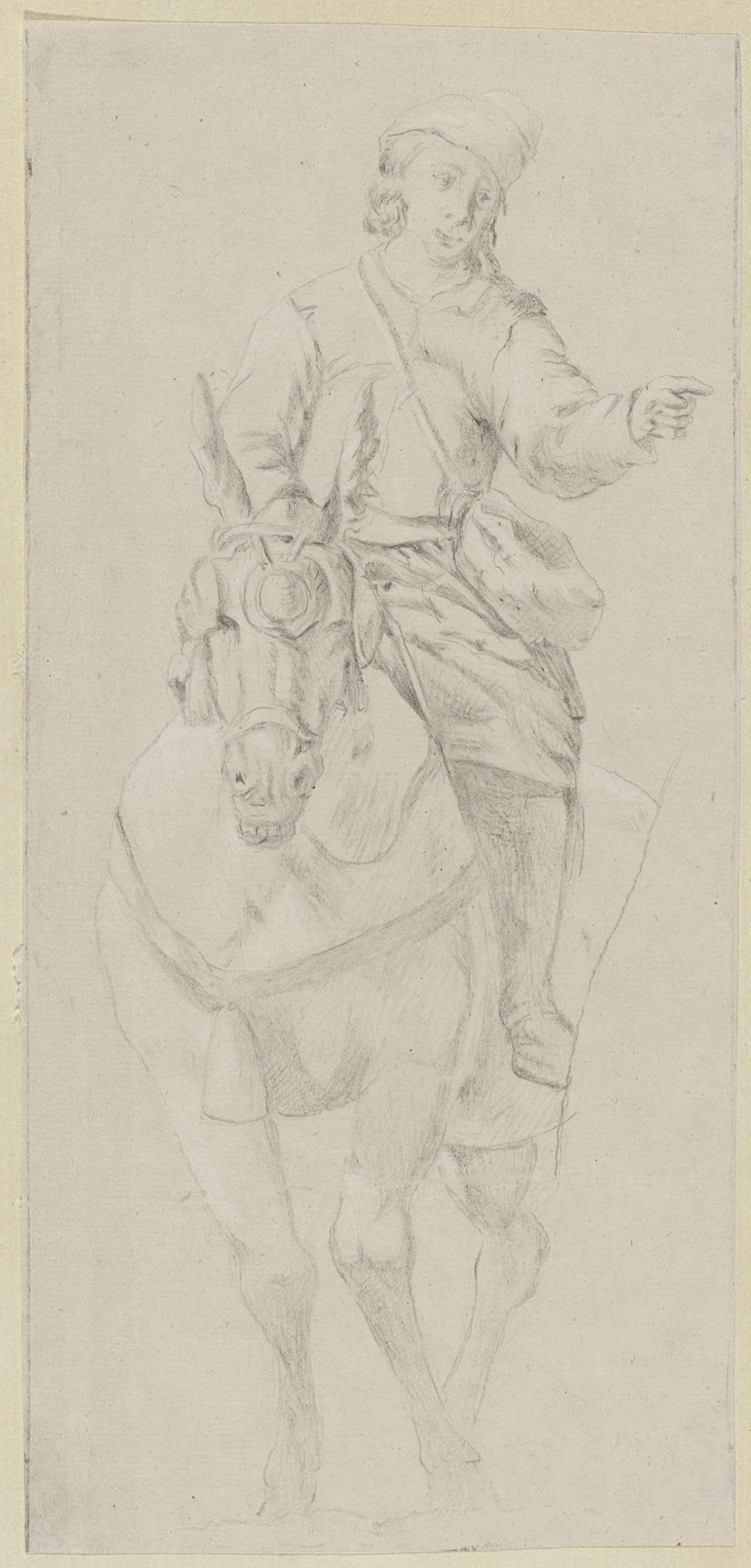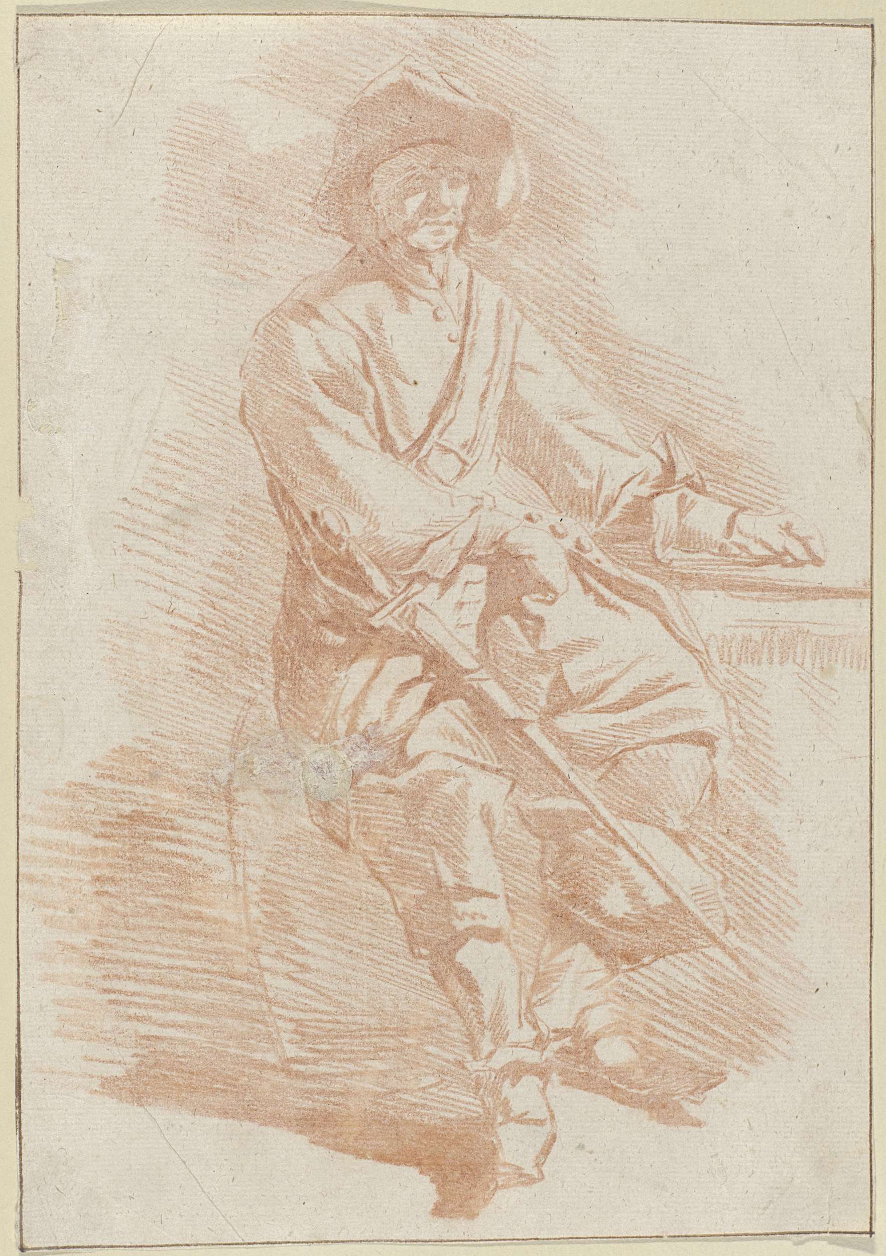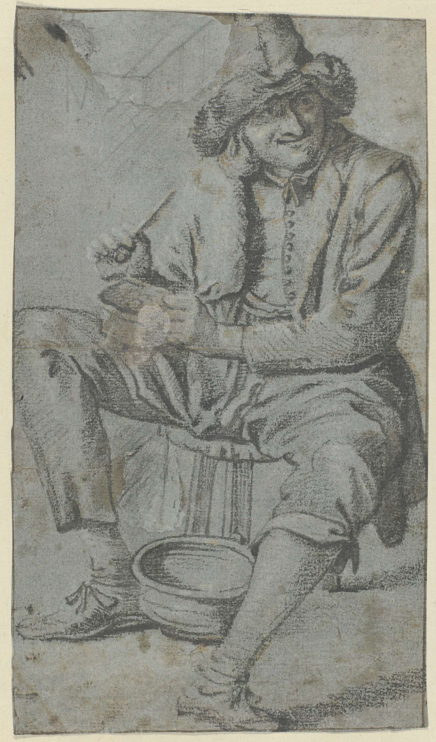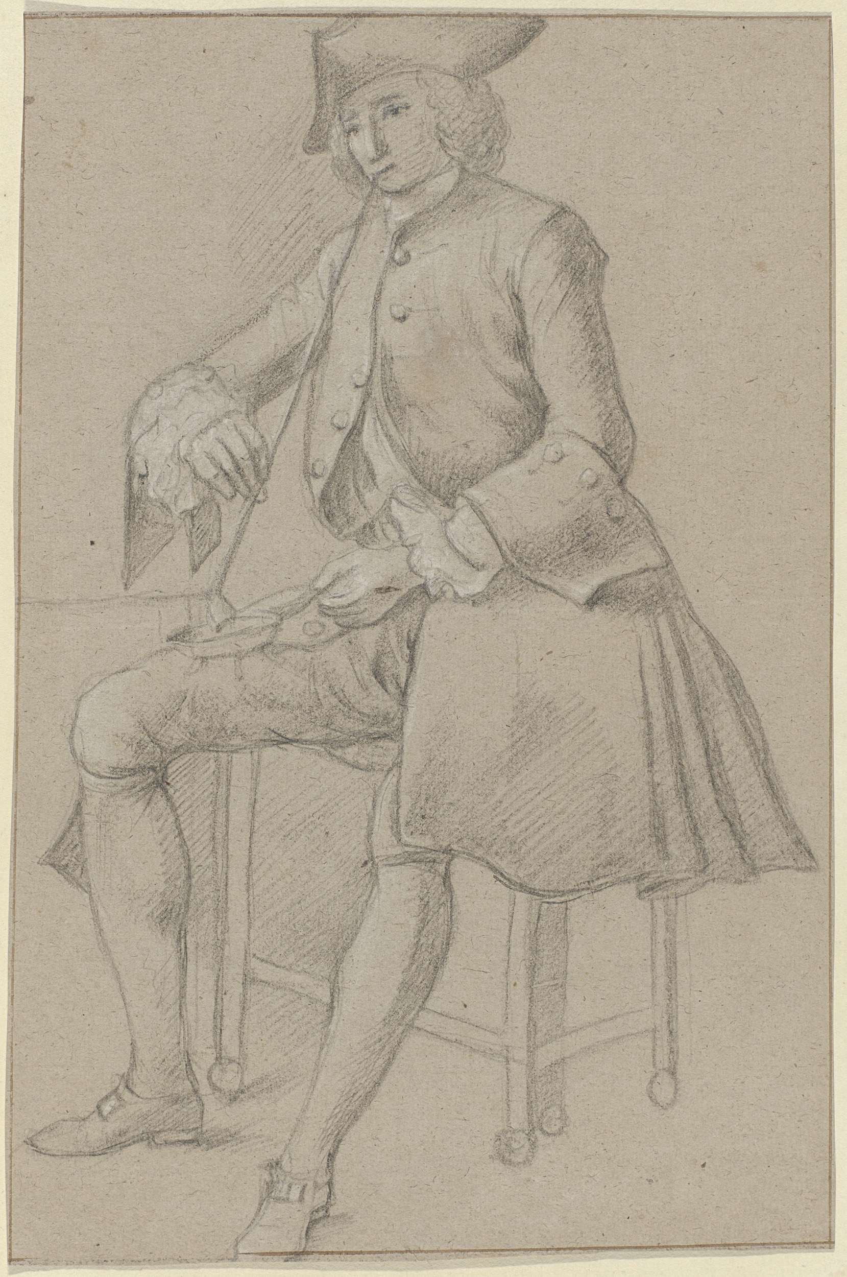 Ruiter met hoed gezeten op een driepotige kruk zijn ...