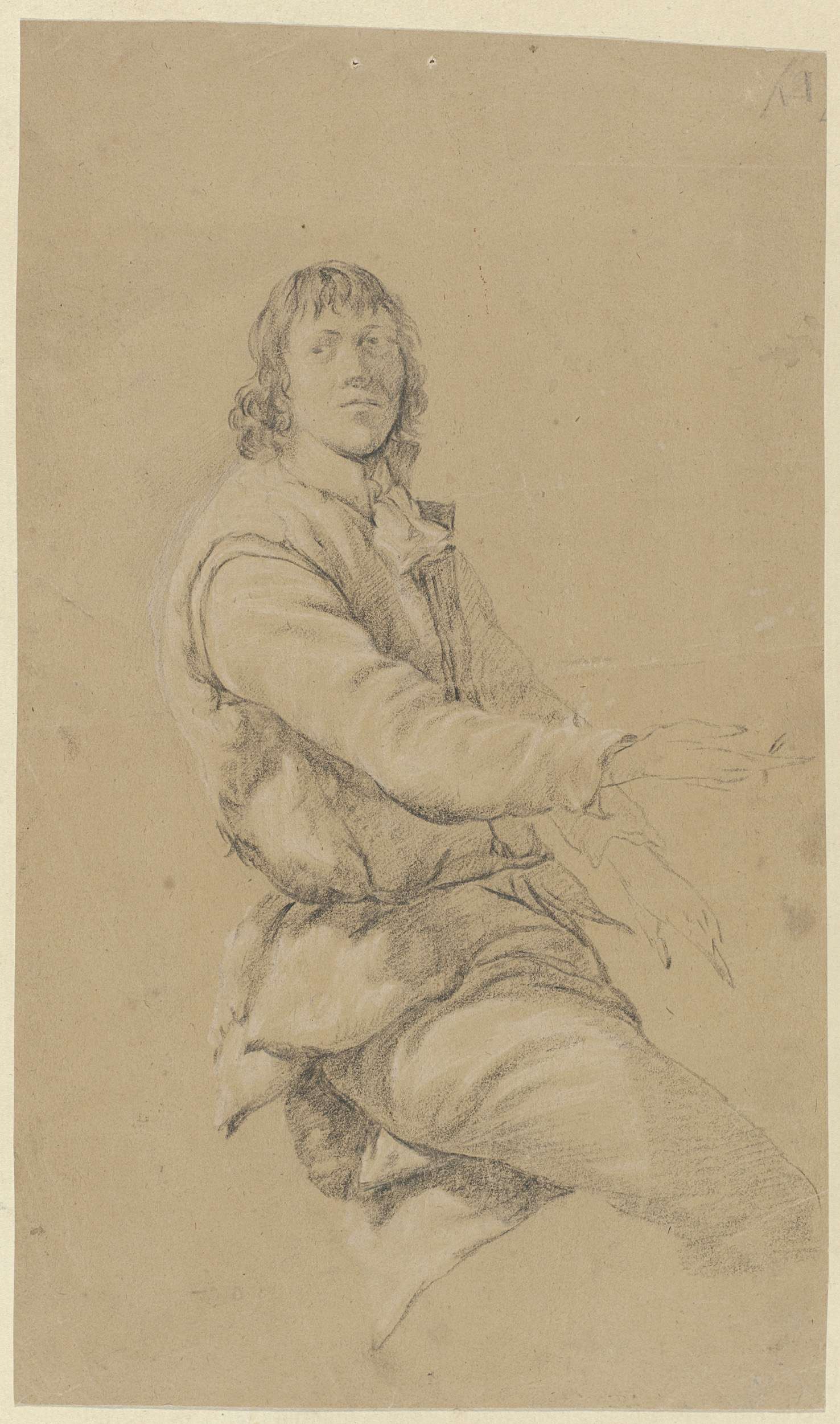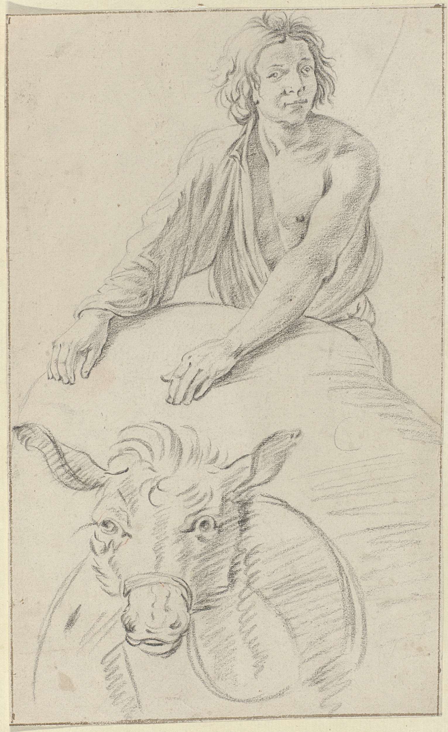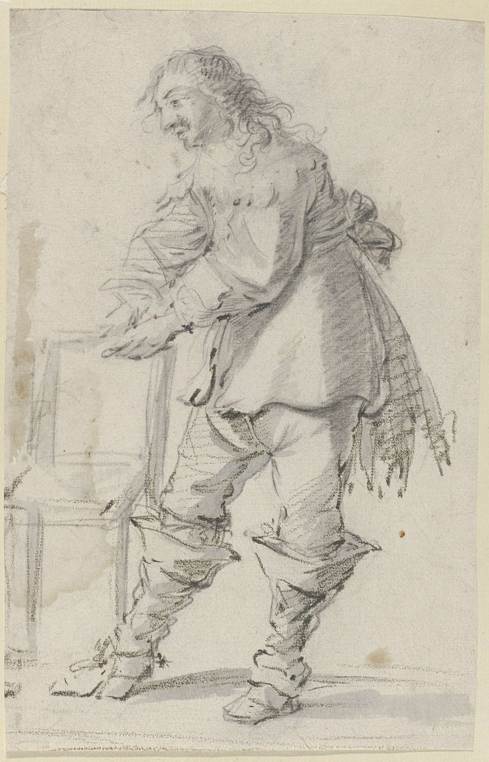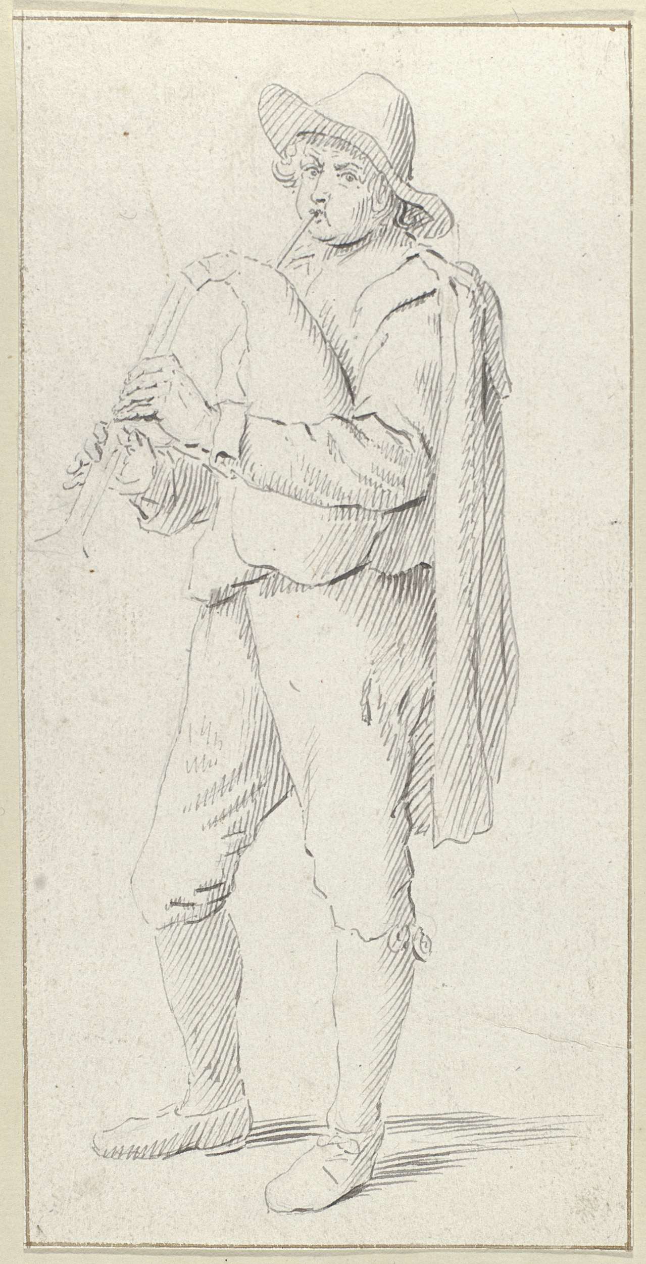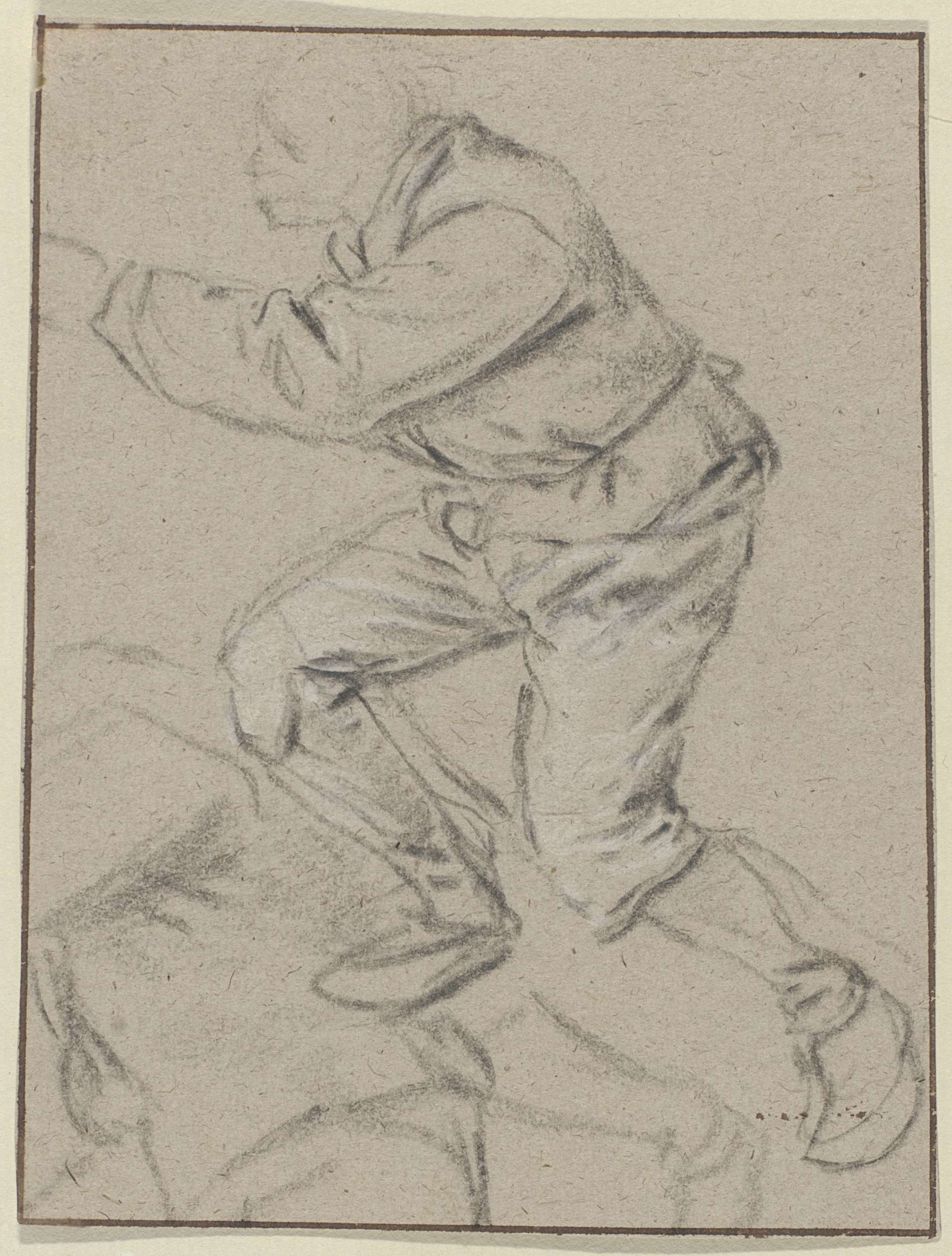 Ruiter met hoed gezeten op een driepotige kruk zijn ...