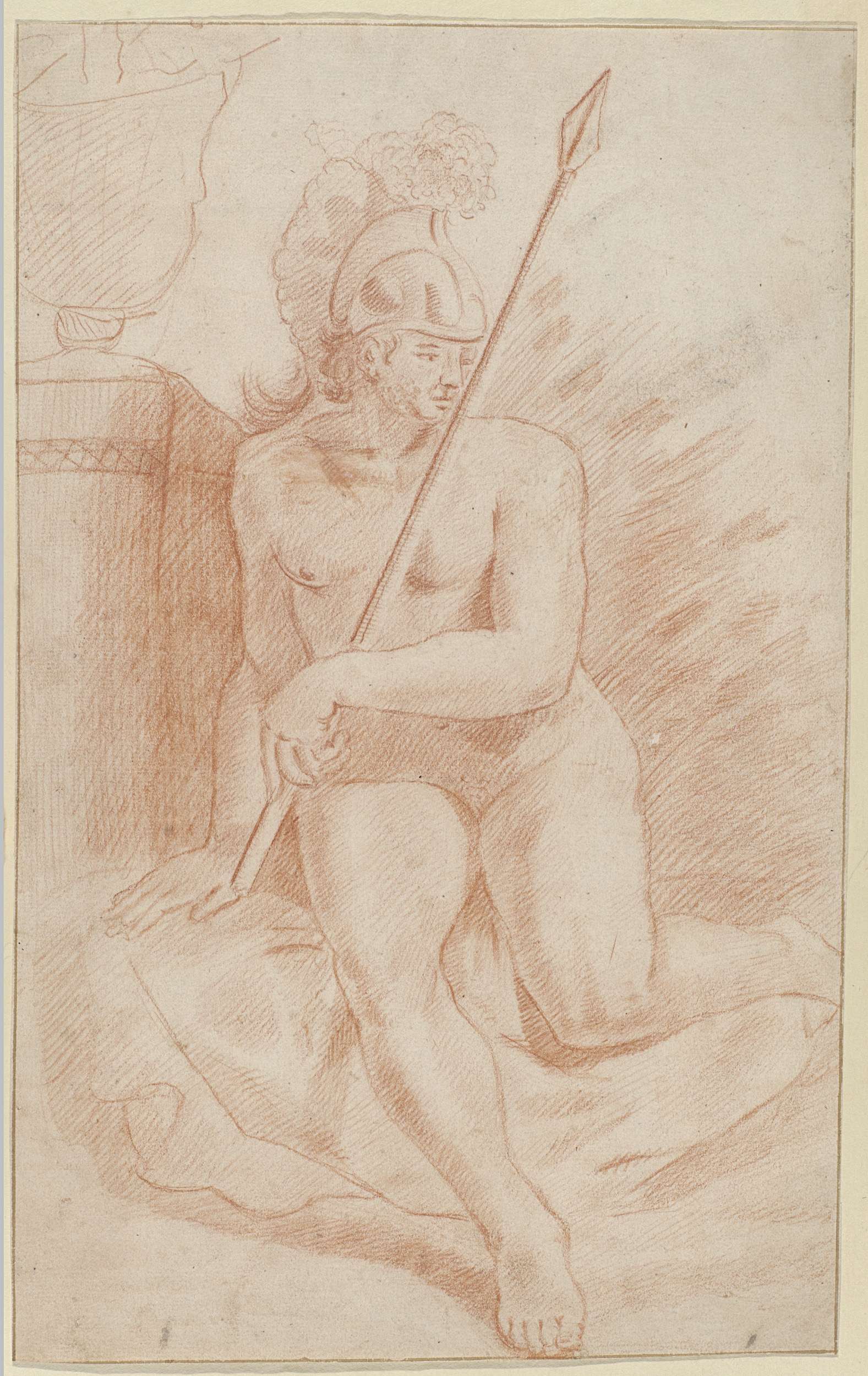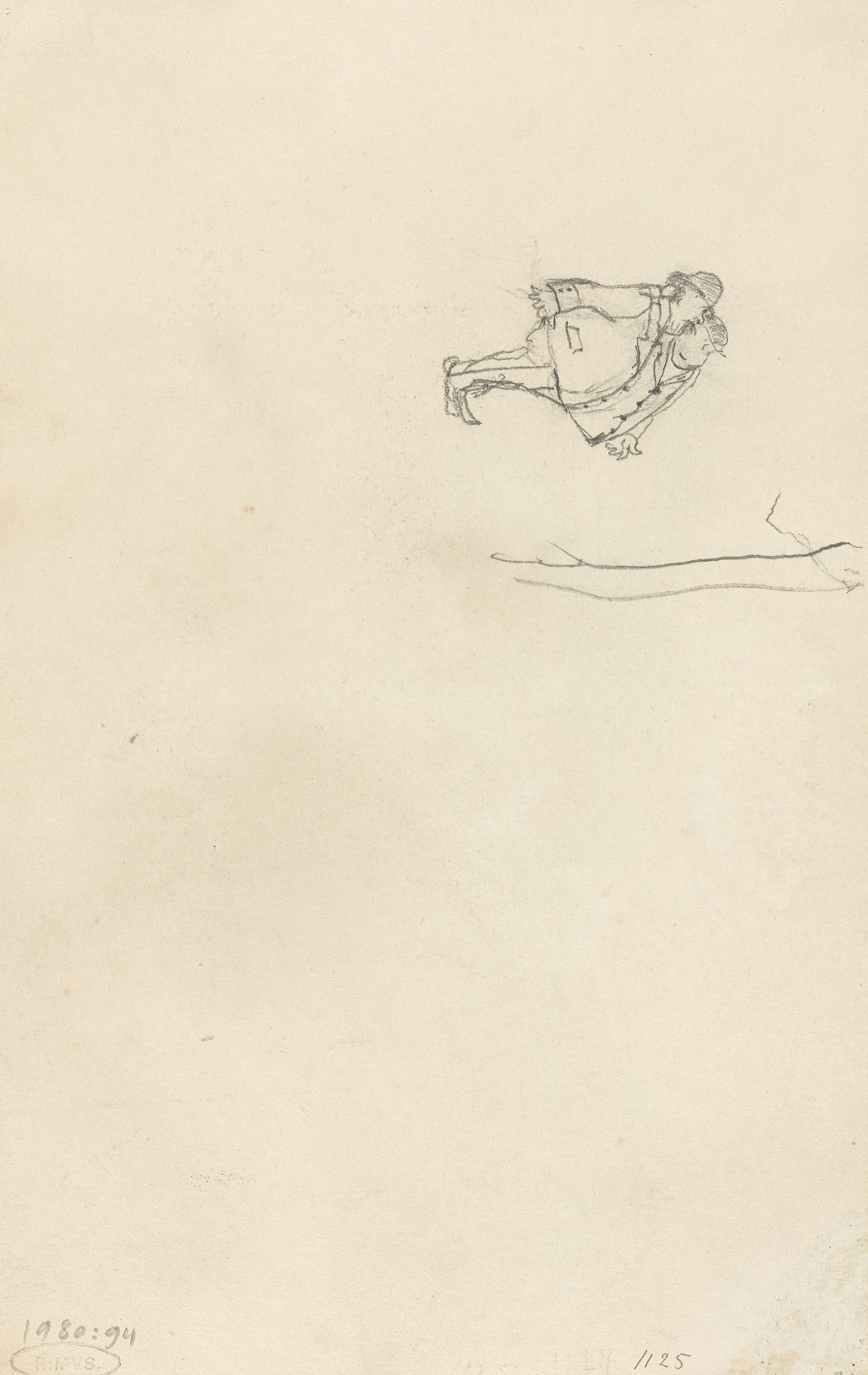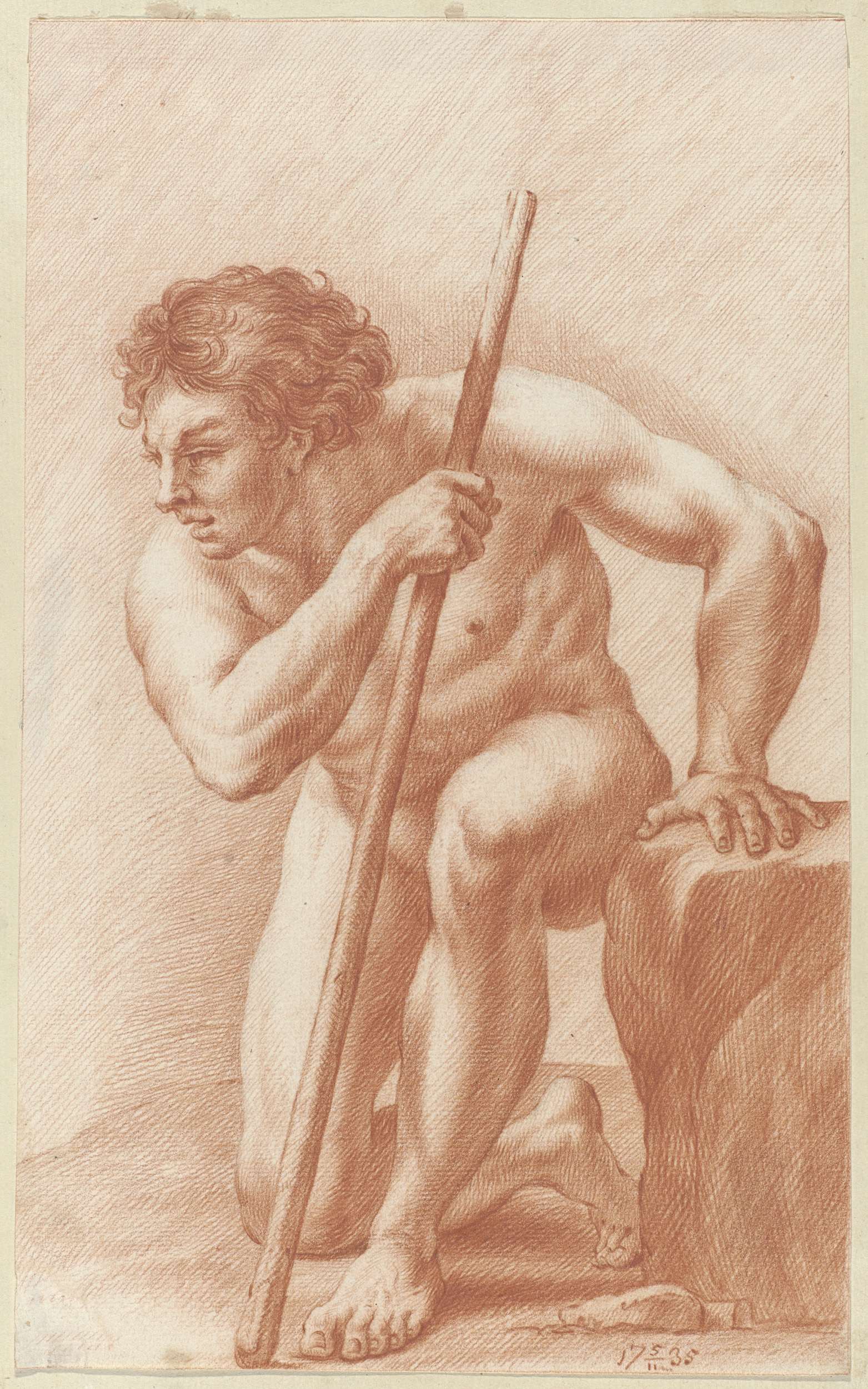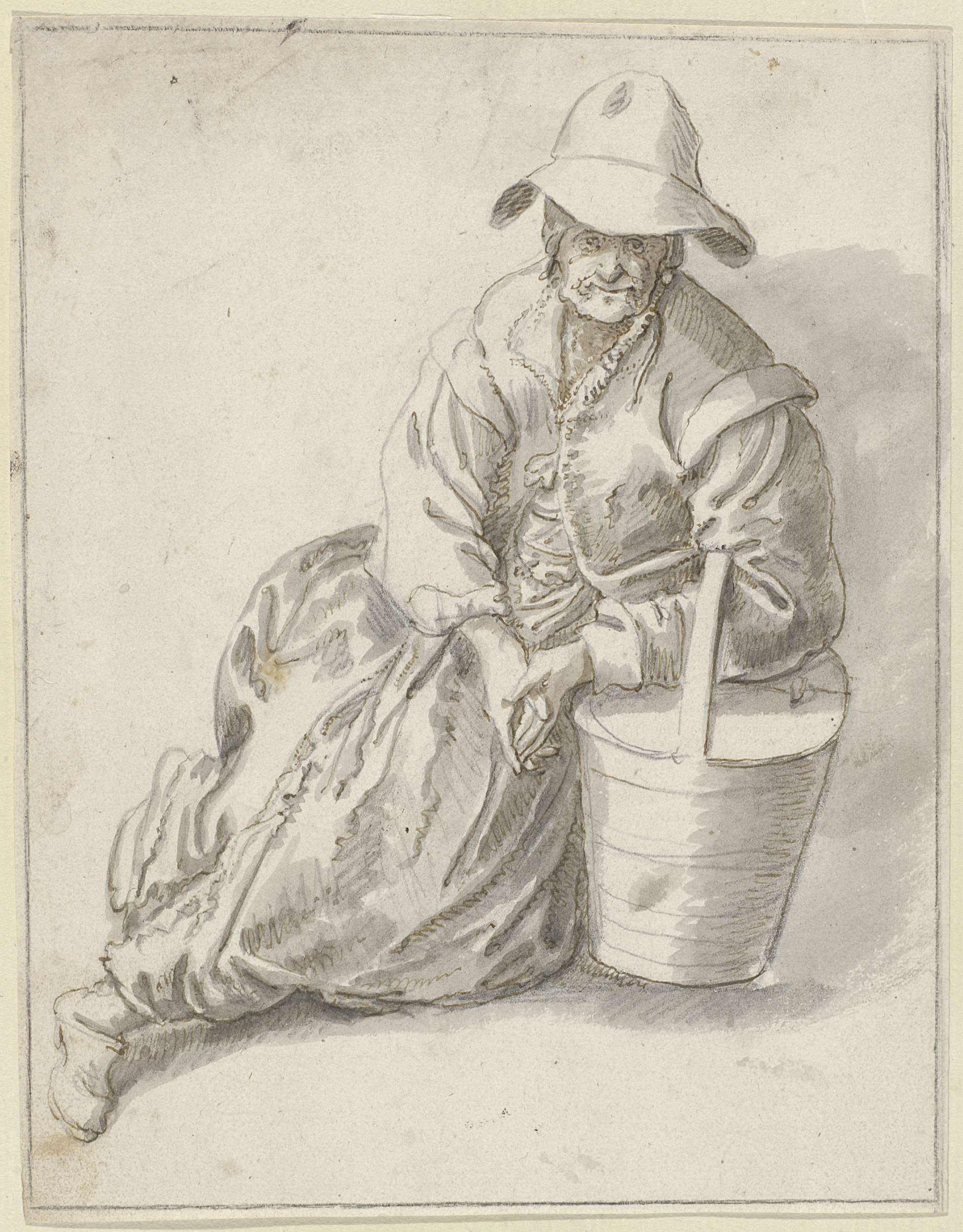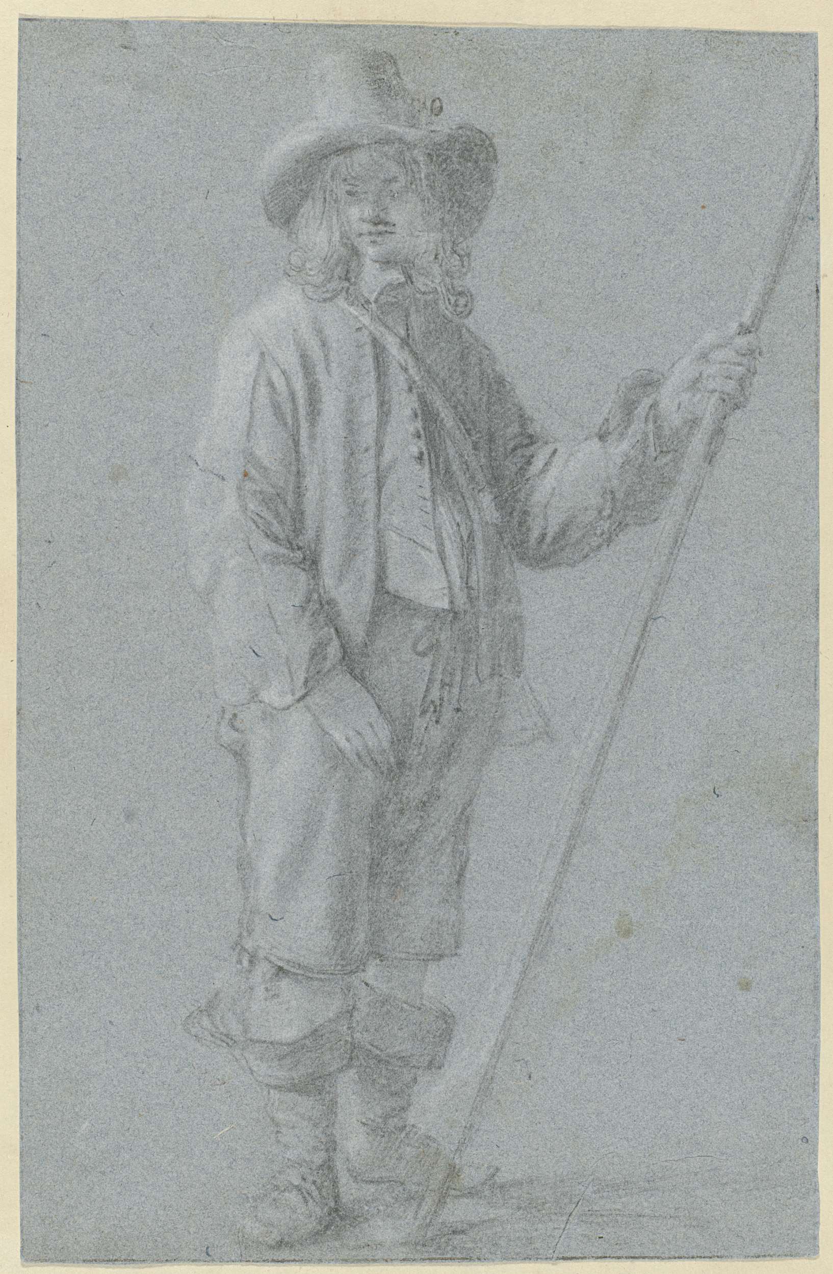 Ruiter met hoed gezeten op een driepotige kruk zijn ...