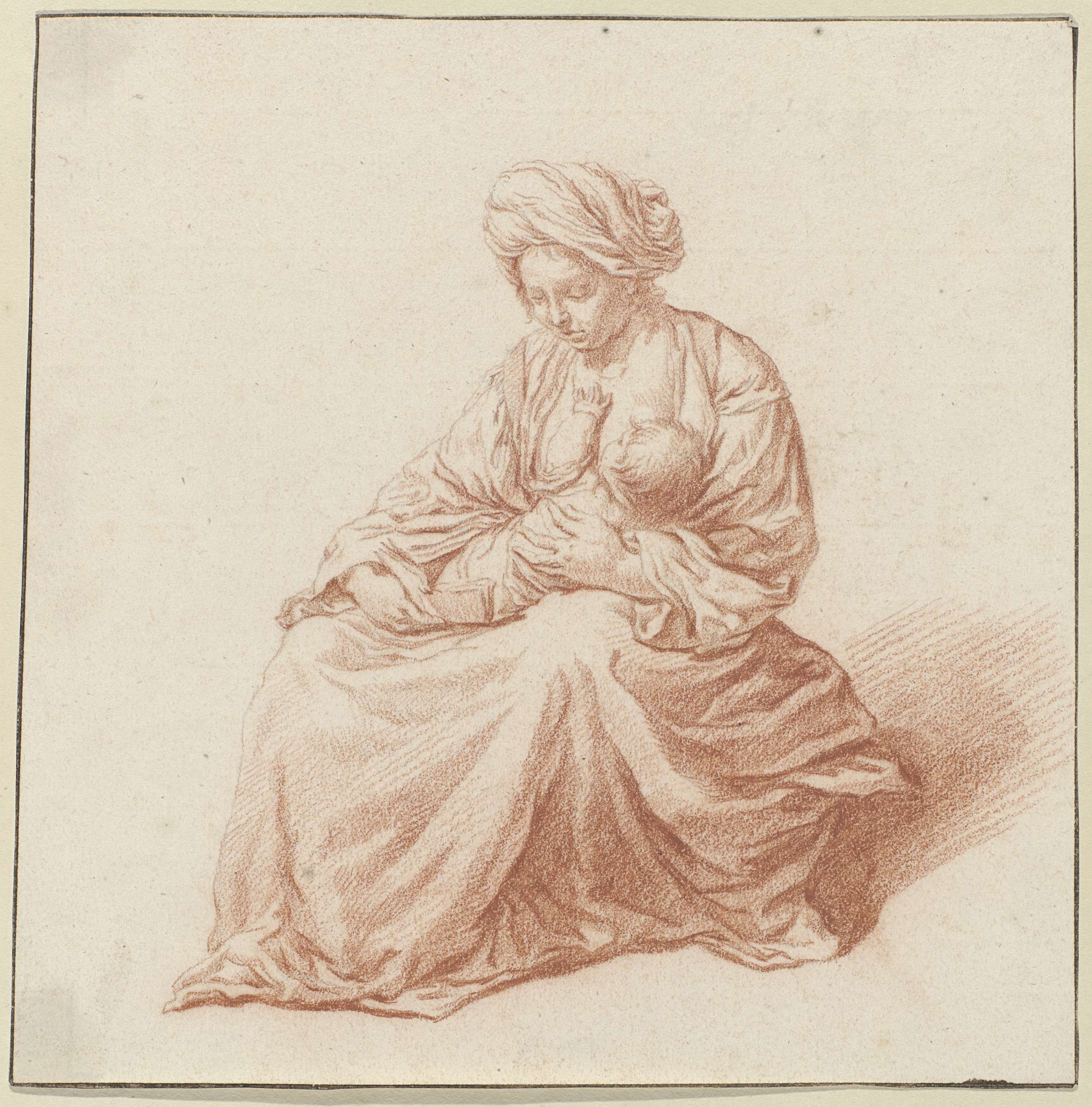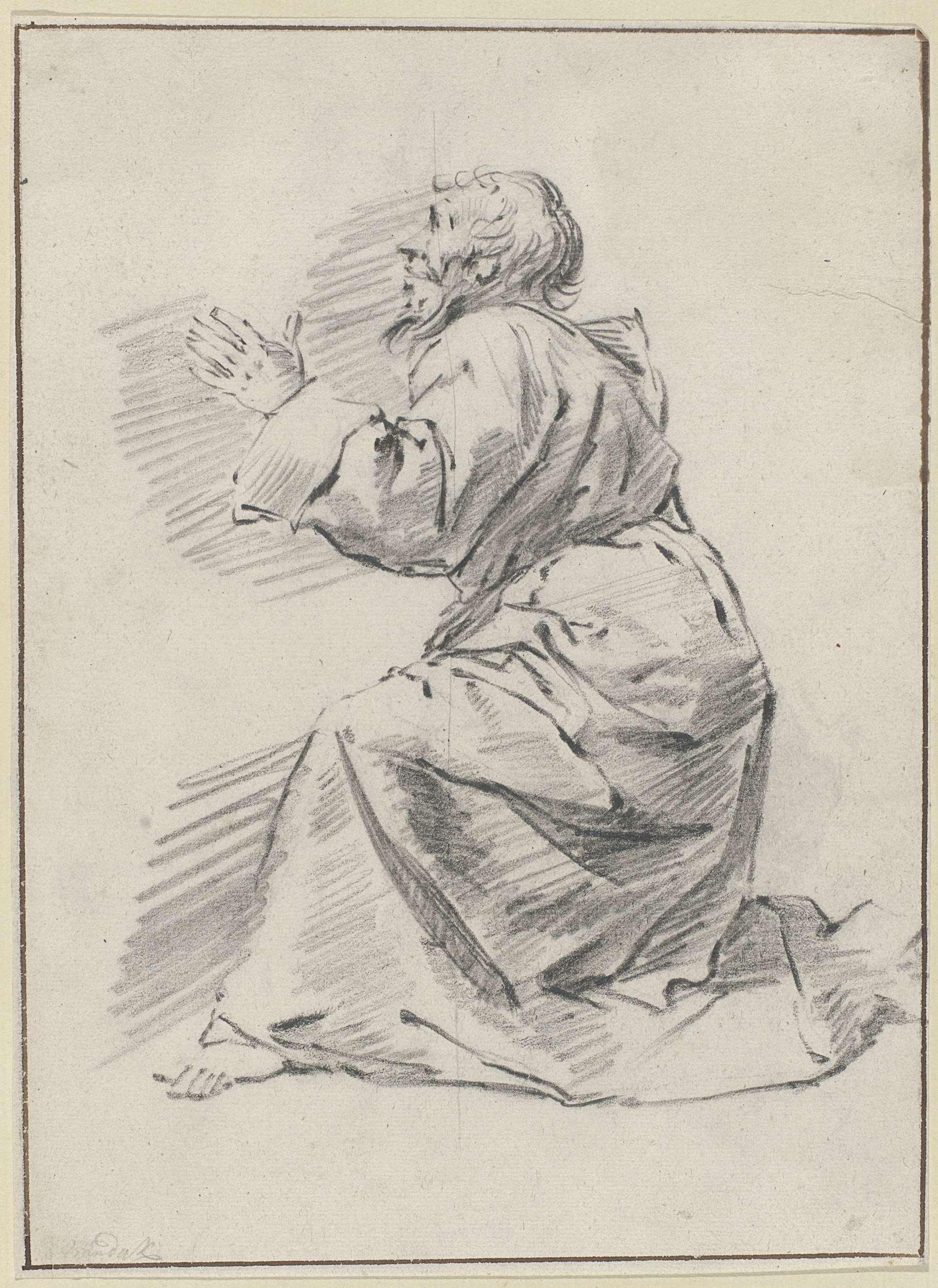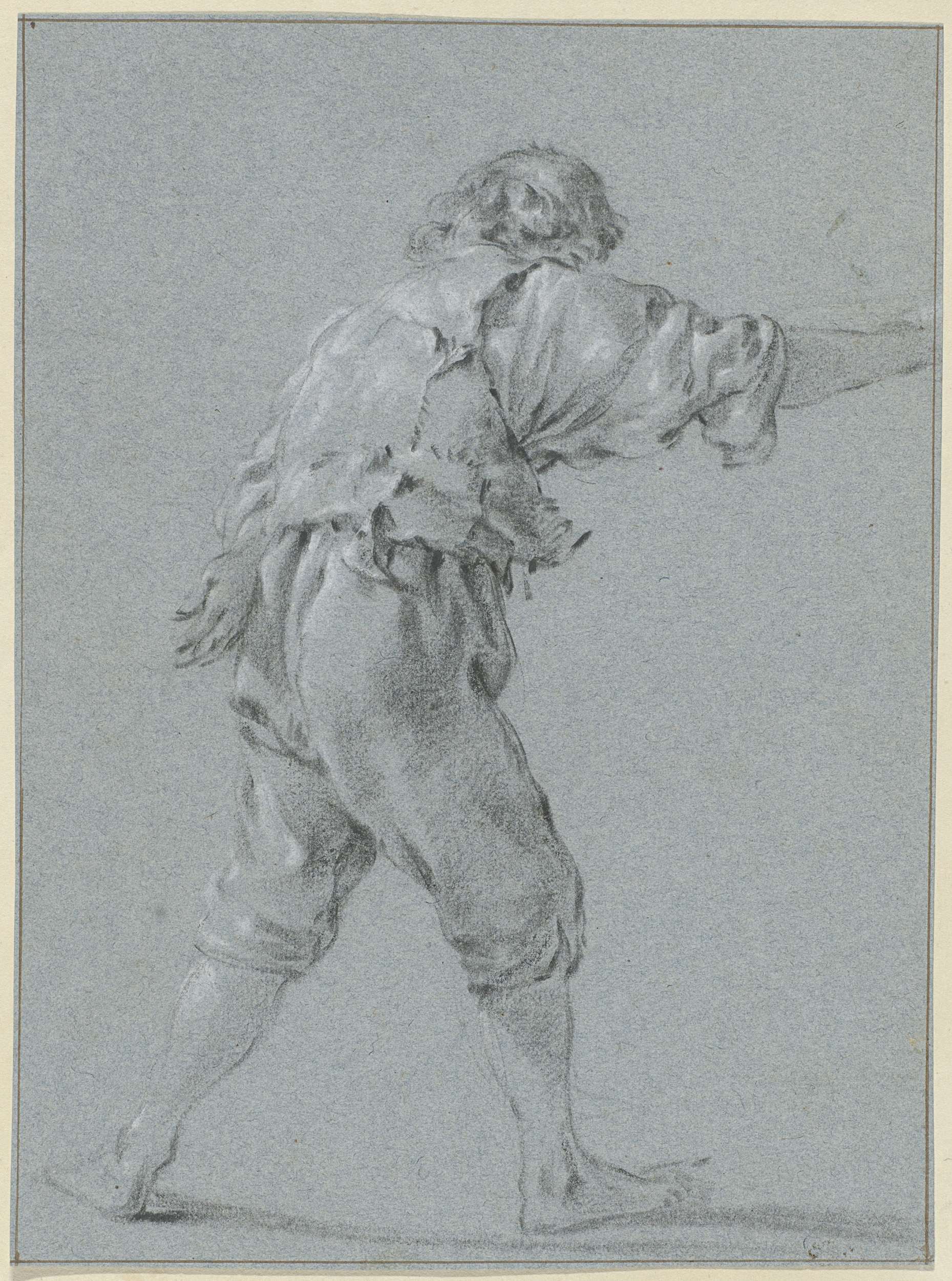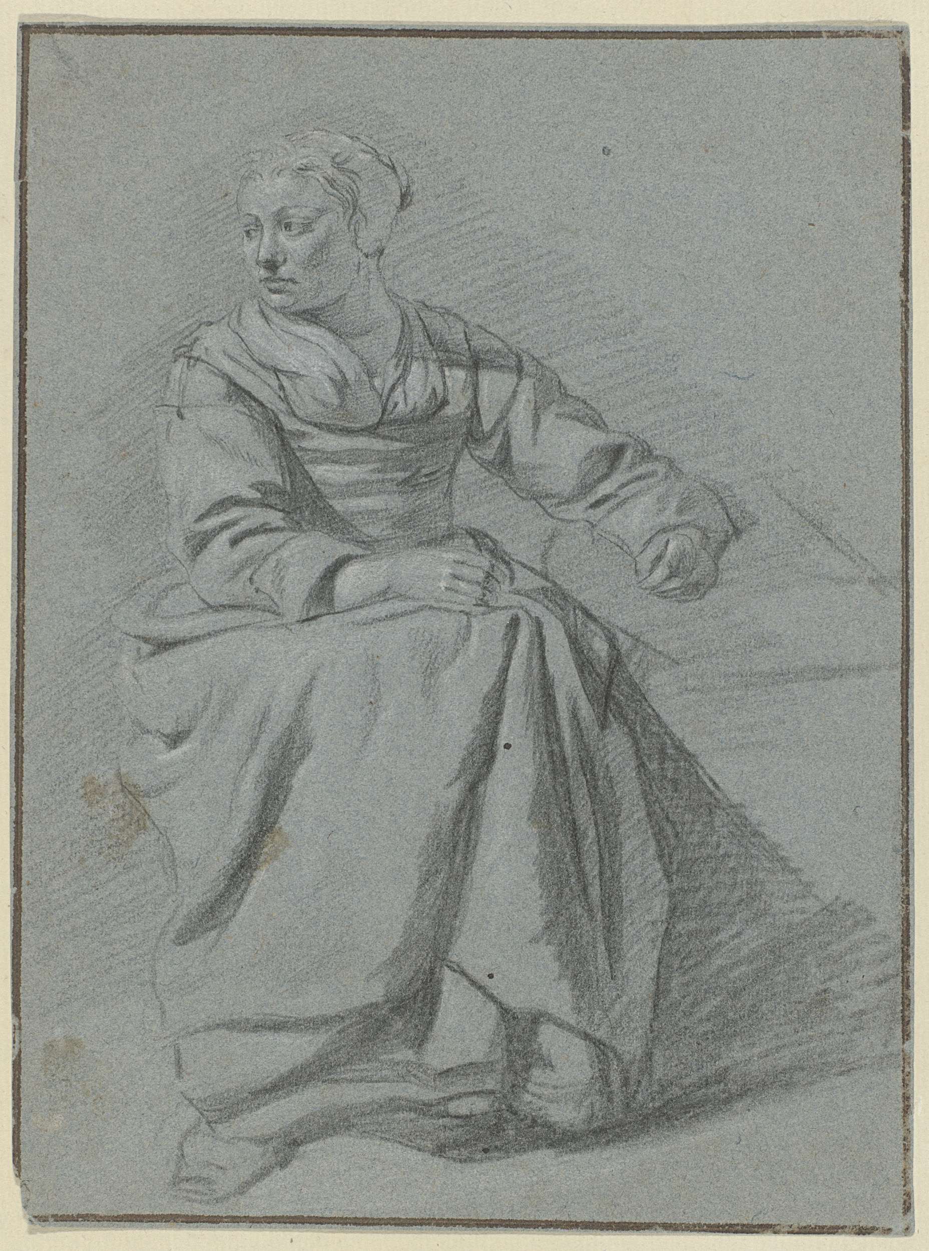 Zittende jongen met opgetrokken been, zijn hoofd op ...