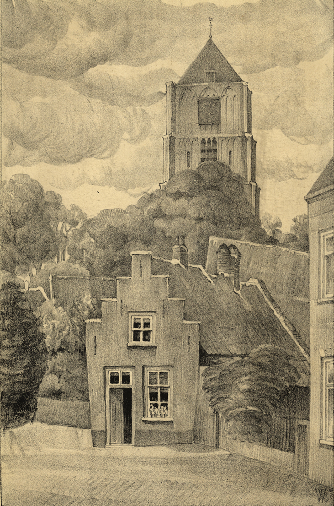 Lithografie, voorstellende de St. Maartenskerk te Ti...
