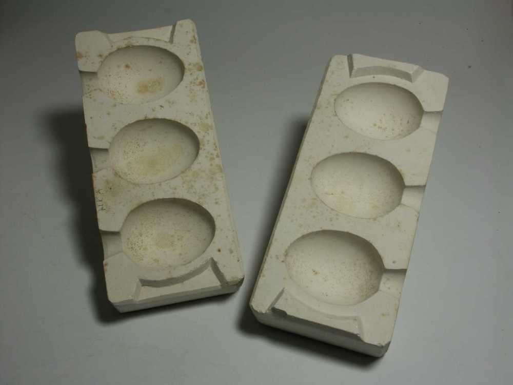 Marsepeinvorm van gips voor 3 eieren uit de 20e eeuw