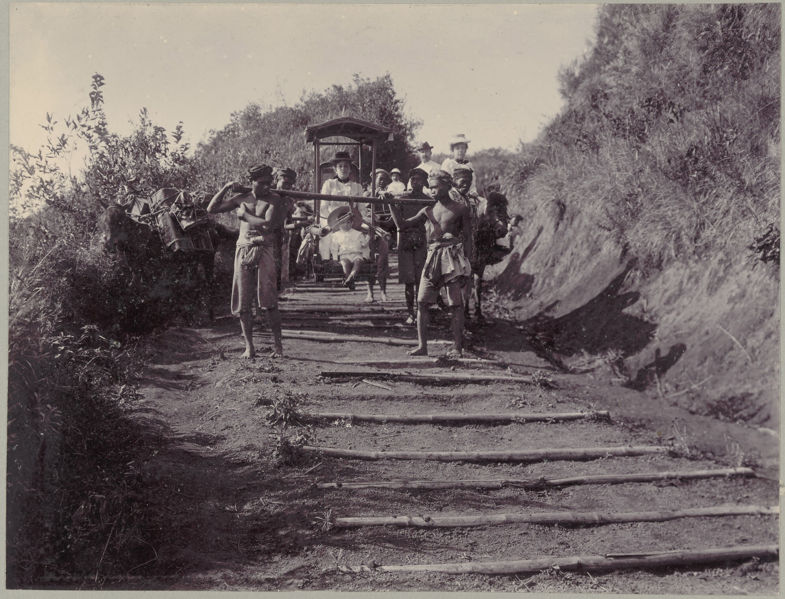 Een Armeense familie per draagstoel op weg naar Tosari