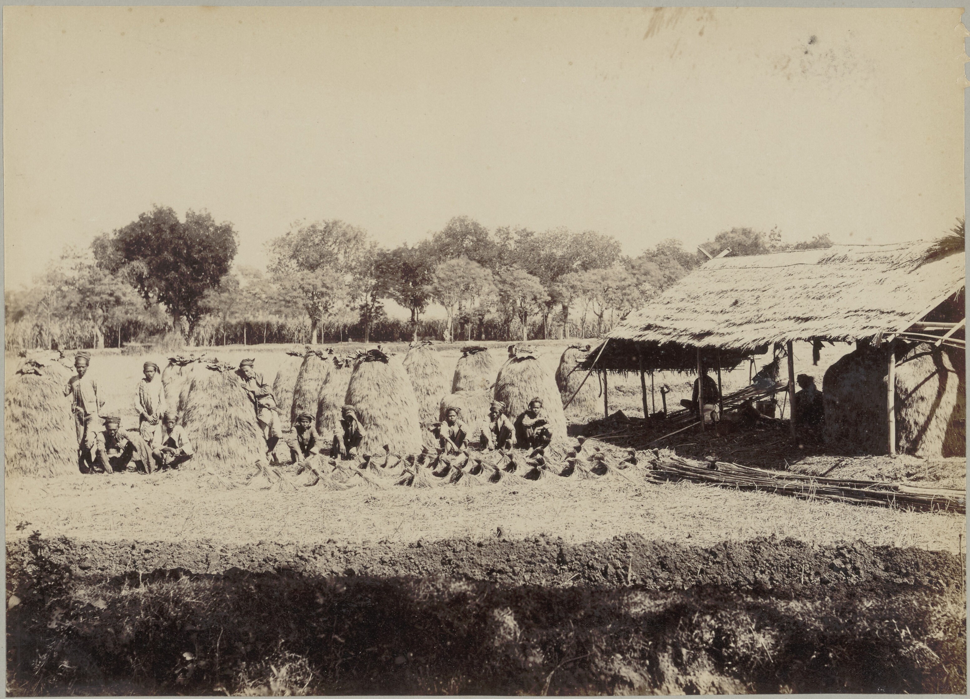 De na de oogst gebundelde en opgestapelde rijst