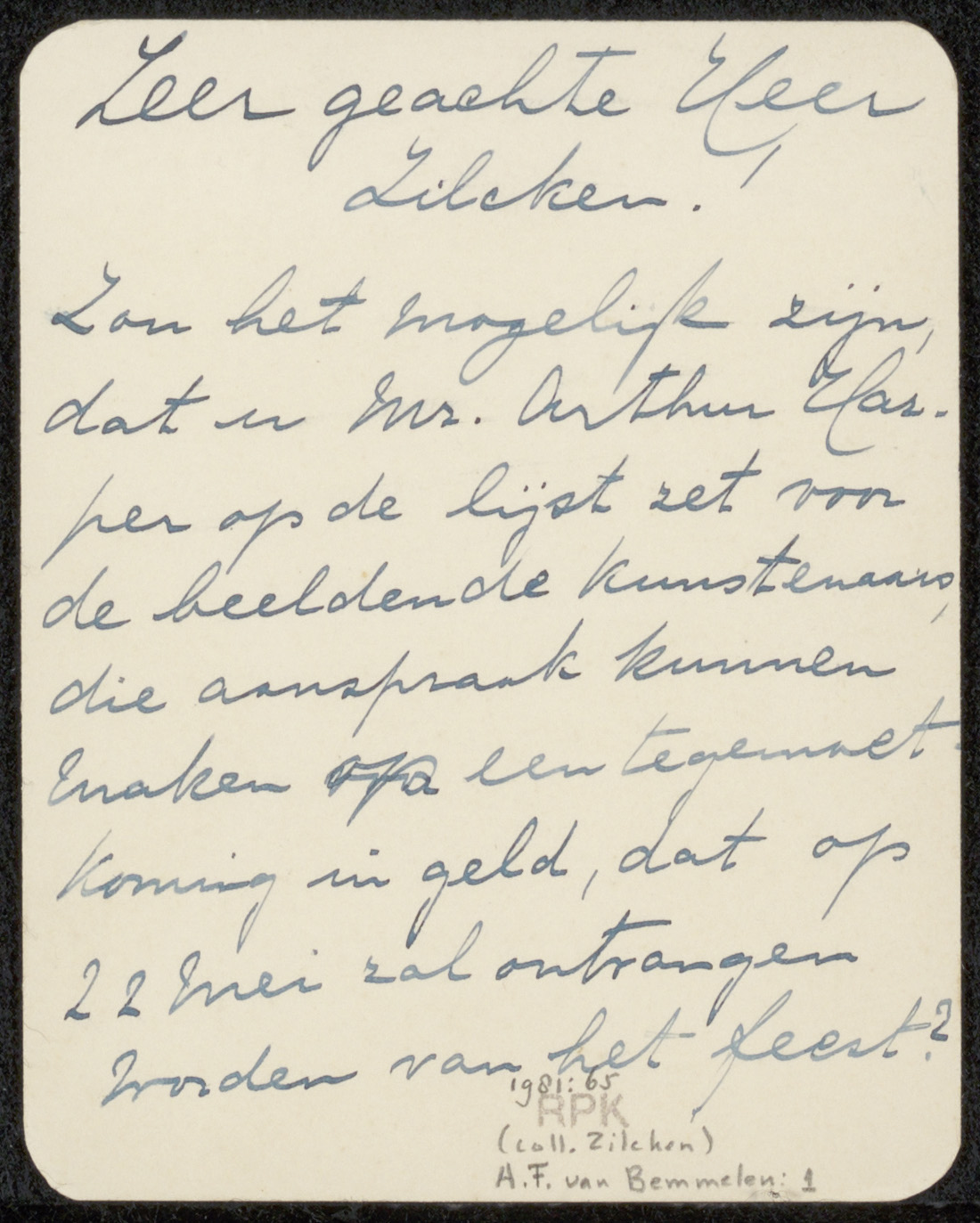 Brief aan Philip Zilcken