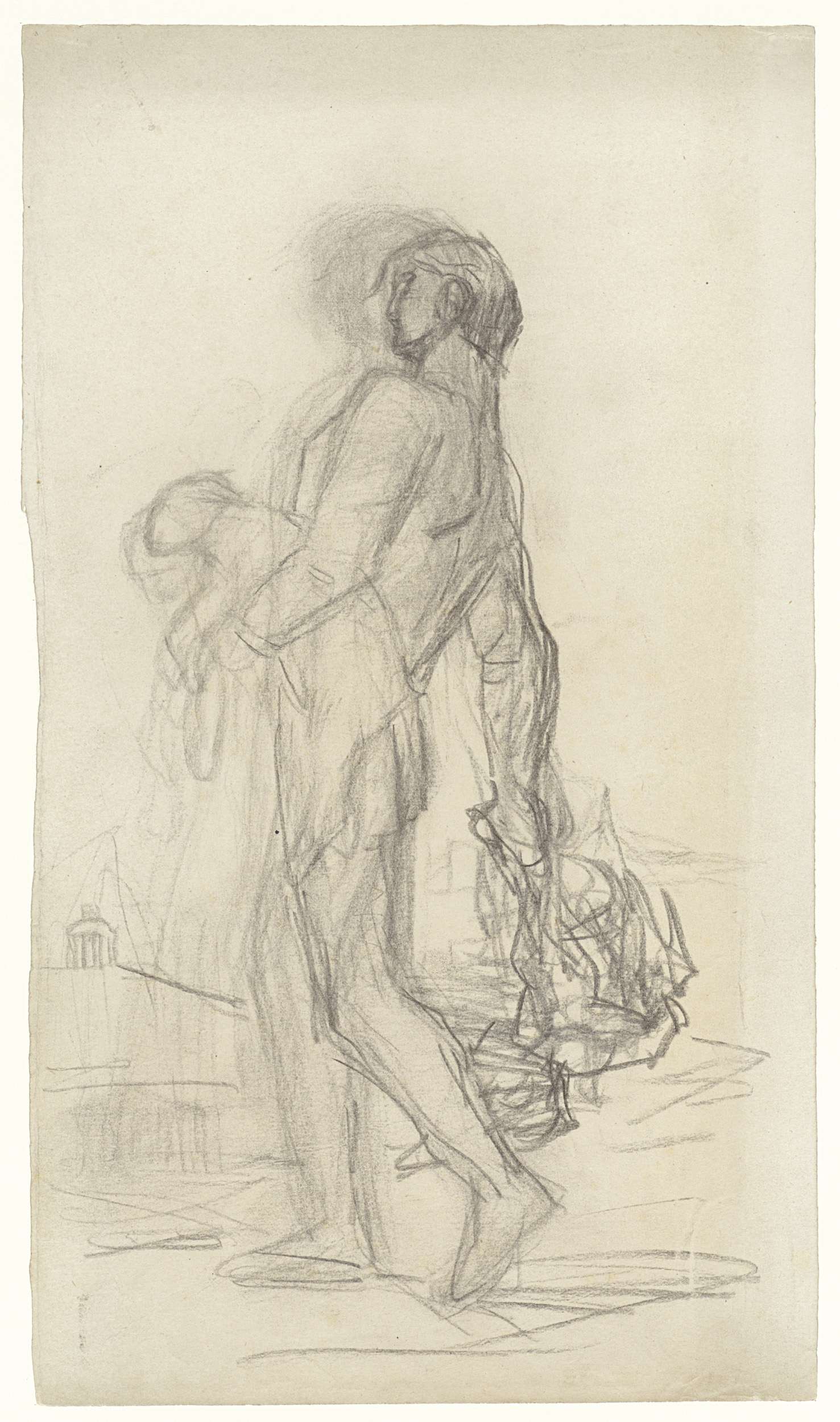 Drie studies voor een landschap met een meisje en tw...